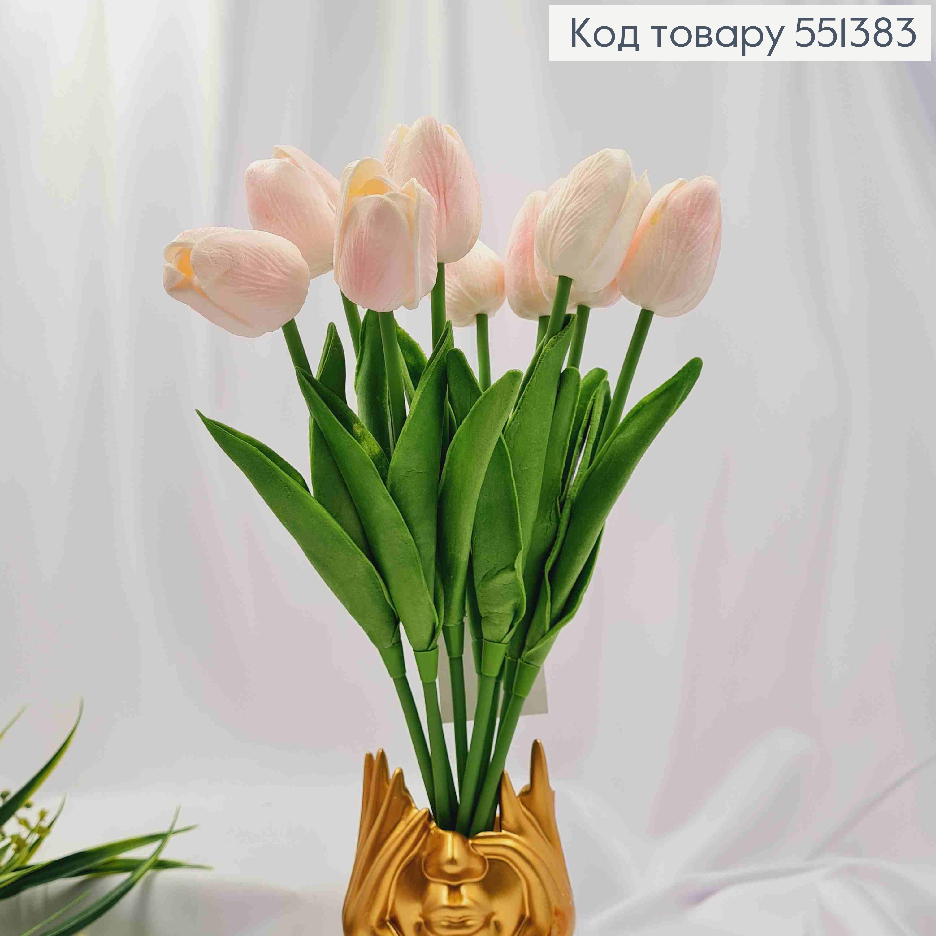 Искусственные цветы ТЮЛЬПАН, Розово-Белого цвета (полиуретановые), 9шт/букет, высота 33см, цветок 4см