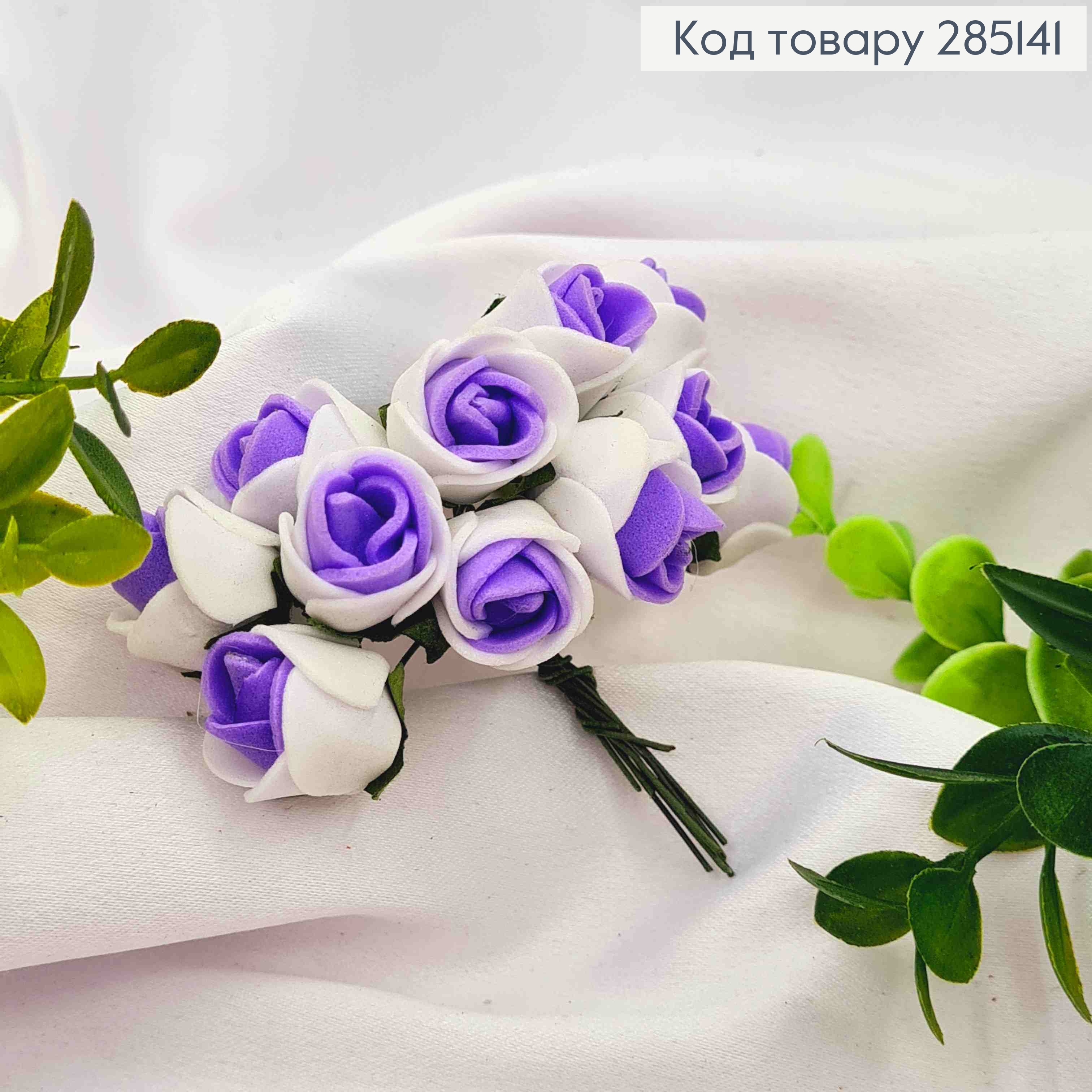 Искусственное приложение Роза фомова (12шт/пучок), БЕЛО-ФИОЛЕТОВОГО цвета, на дротиках, 8см