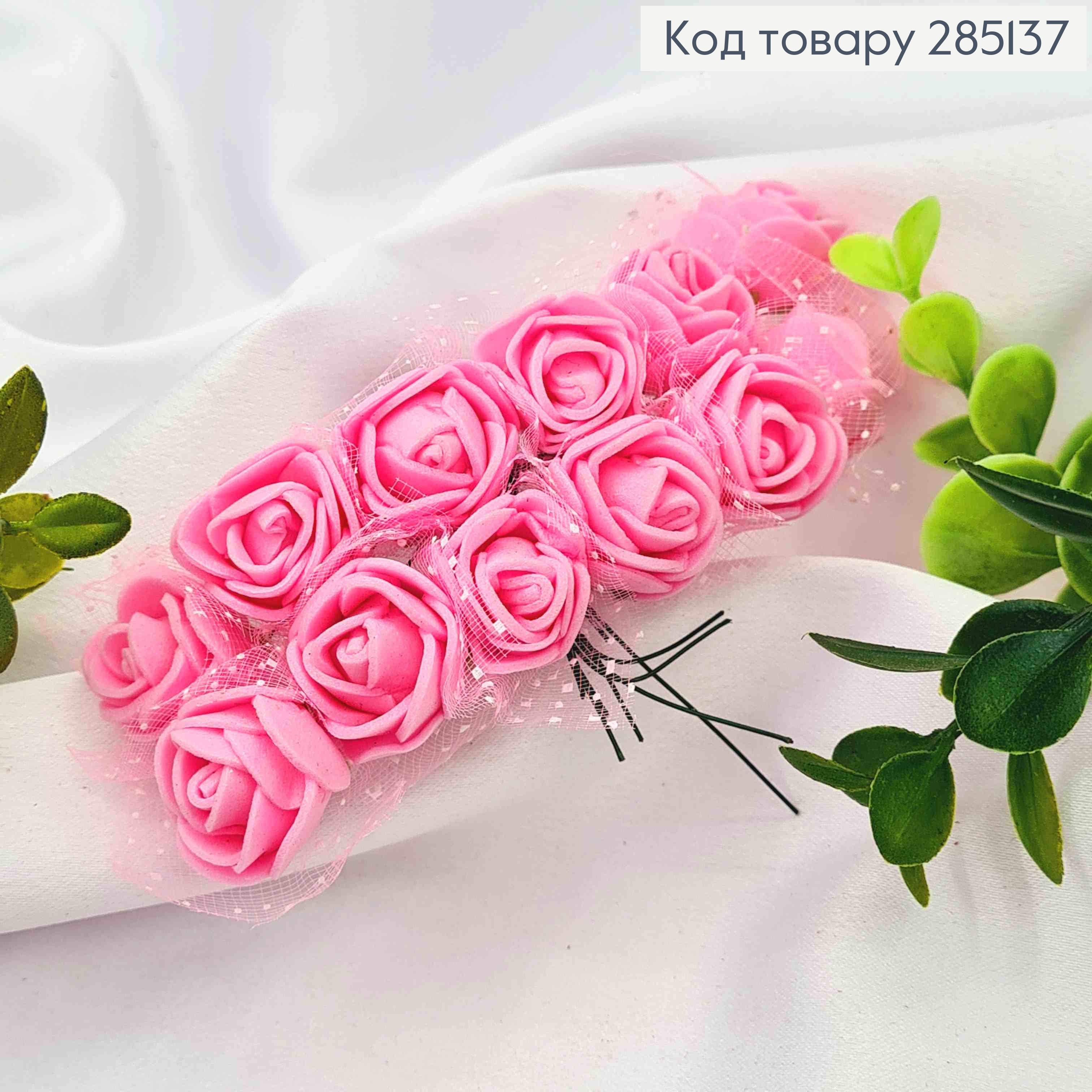 Искусственное приложение Роза фомова (12шт/пучок), РОЗОВОГО цвета, на дротиках, 8см