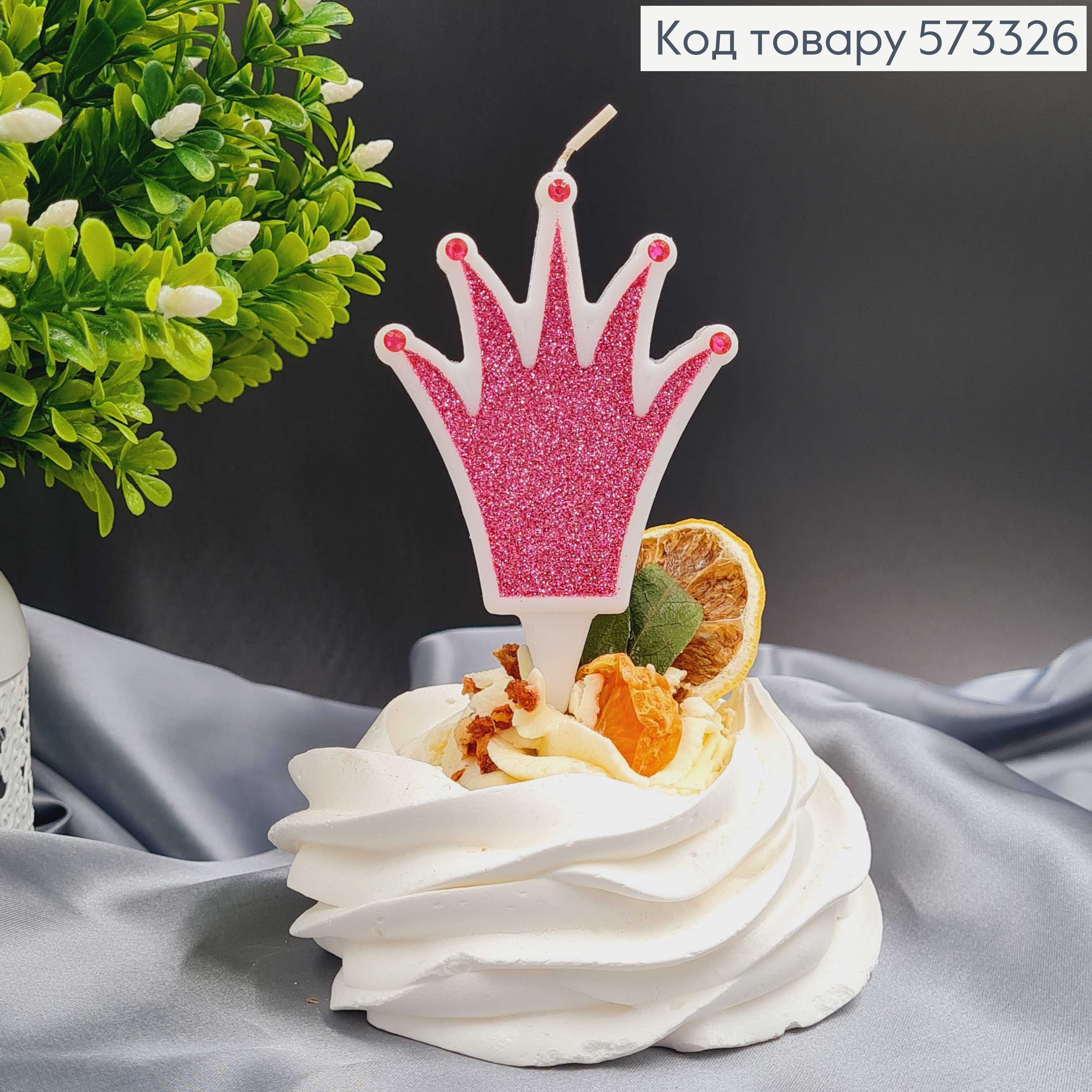 Свечка для торта "Корона" розовая, 7,5+2см, Украина