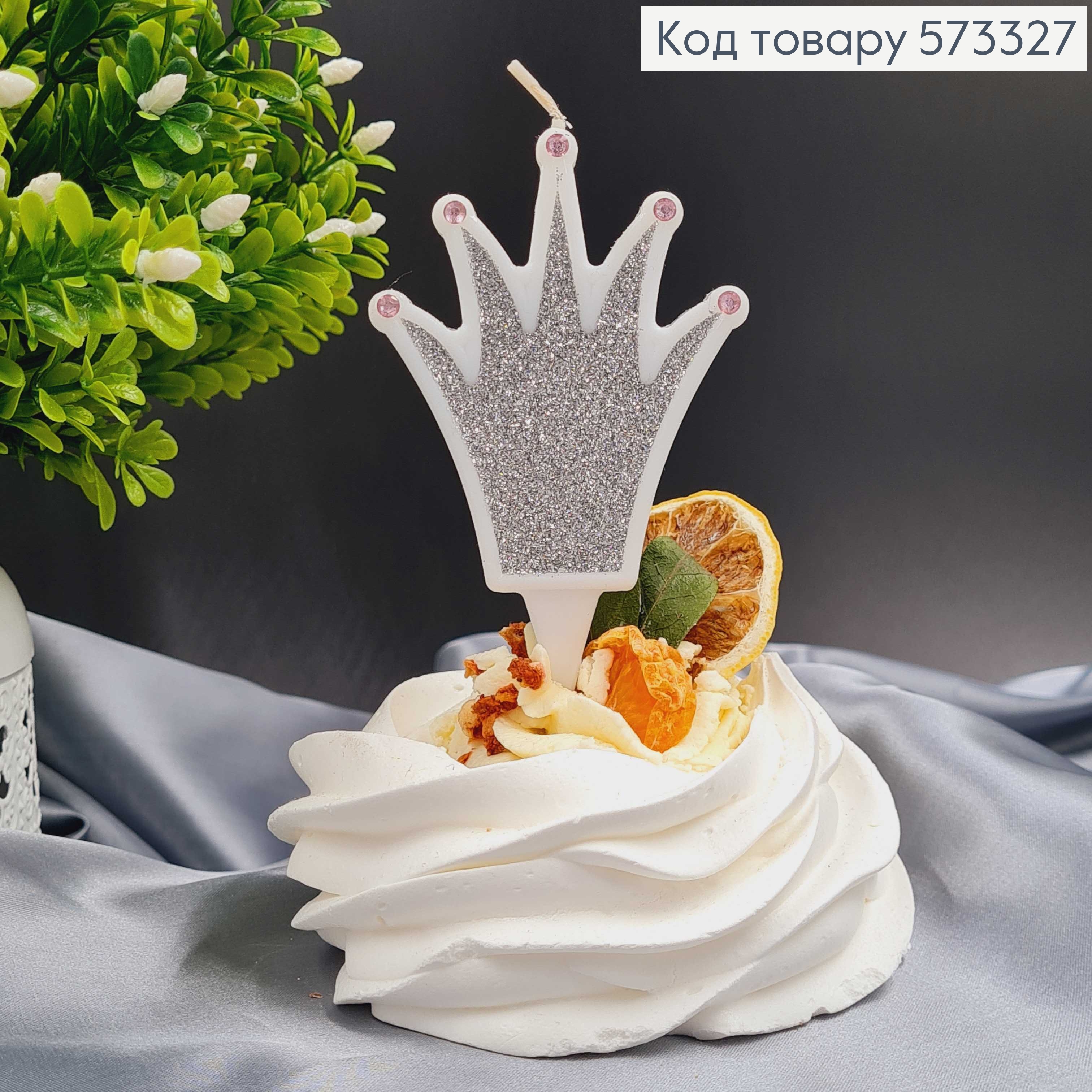 Свеча для торта "Корона" серебро, 7,5+2см, Украина