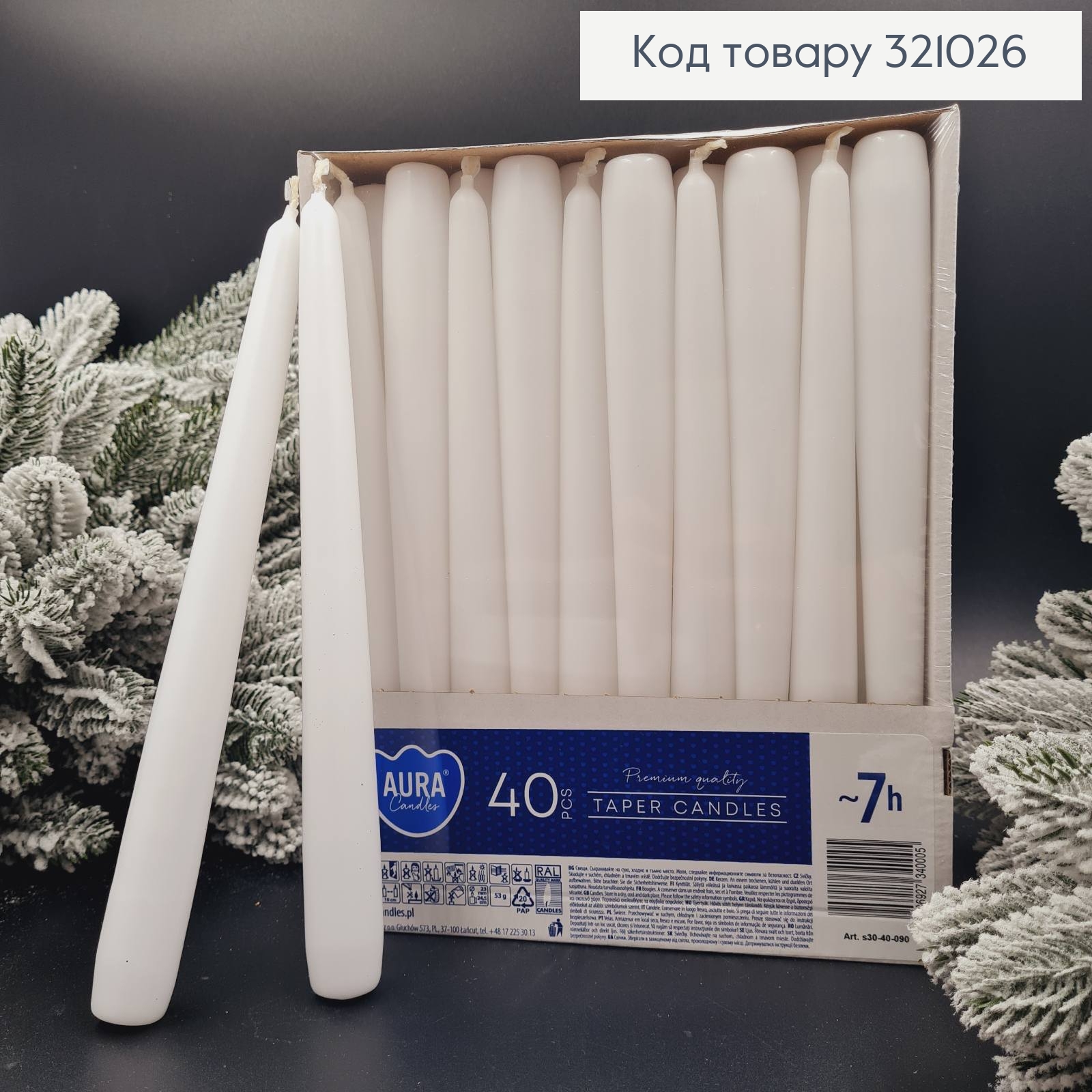 Свеча длинная конусная БЕЛАЯ, длина 25см, горение 7час., AURA, Bispol (качественная, не течет)