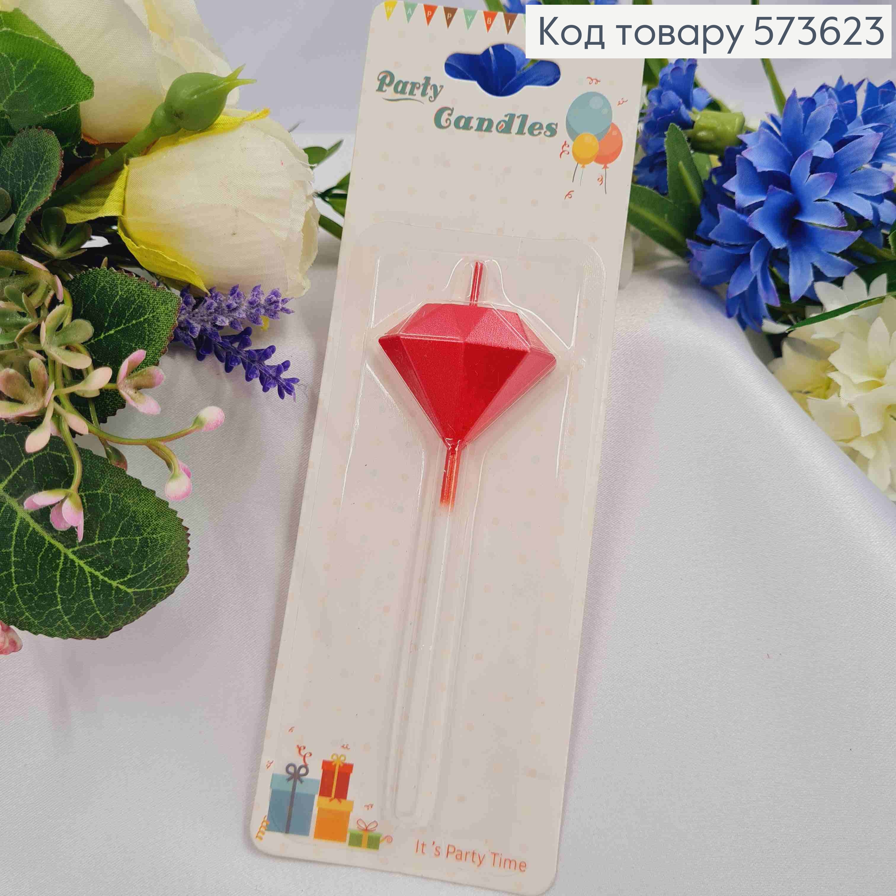 Свеча - фигурка в торт бриллиант (3см + 7см), красного цвета