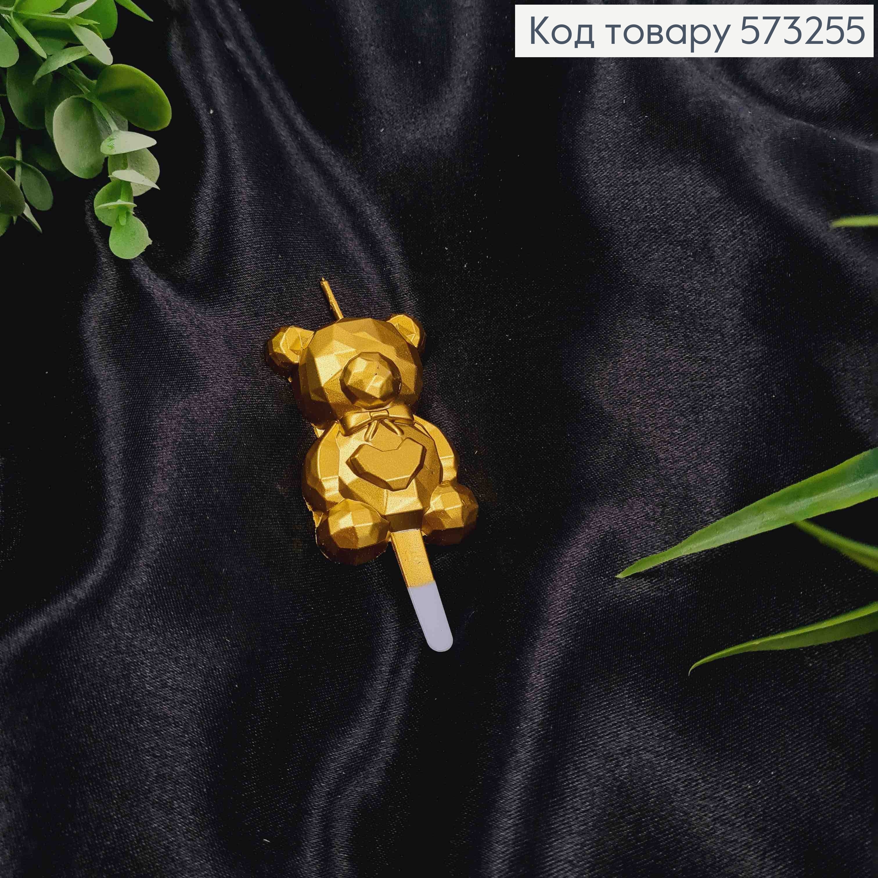 Свеча - фигурка в торт МИШКА (6см + 4см), ЗОЛОТОГО цвета