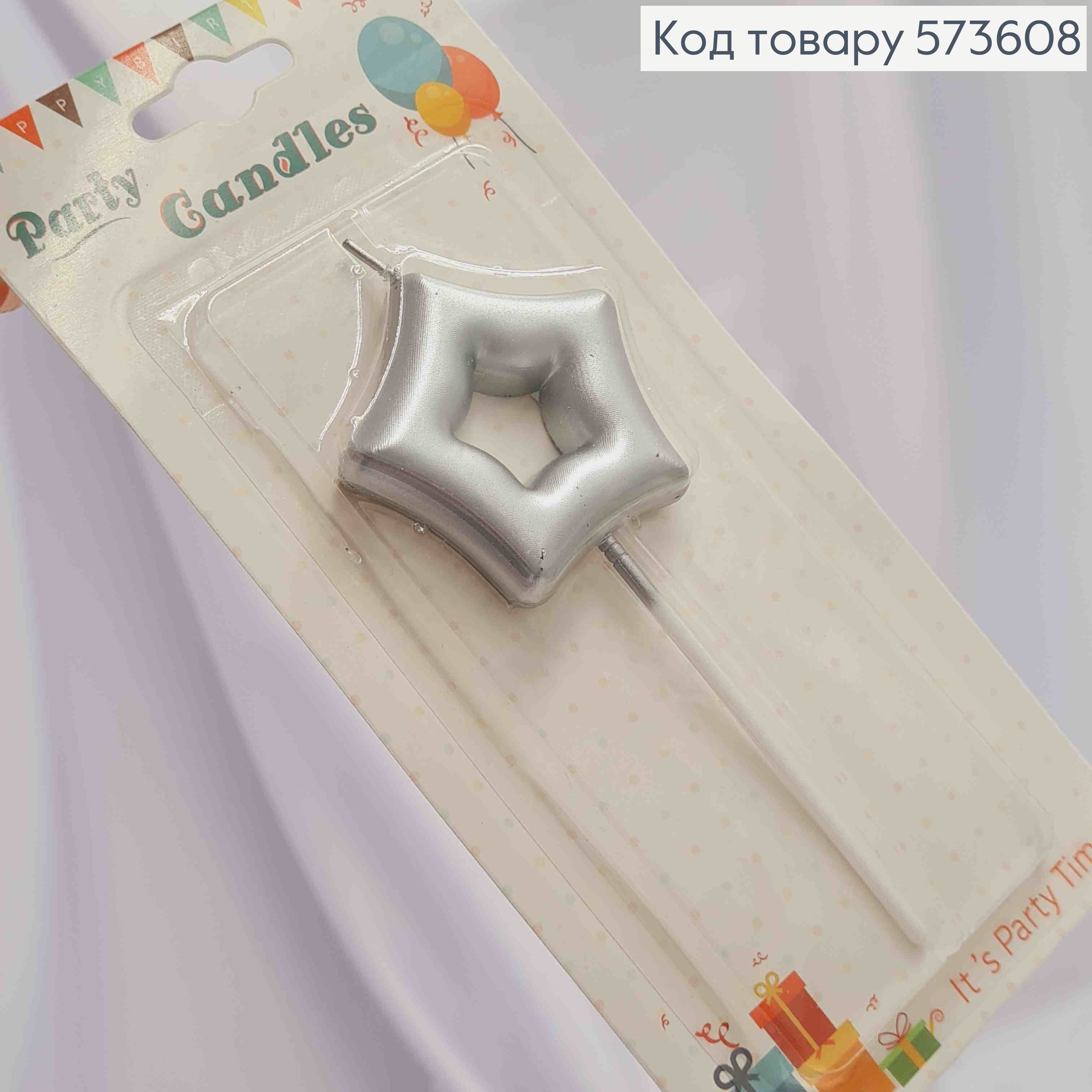 Свеча – фигурка в торт ЗВЕЗДА (даметр 5,5см + 8см),СЕРЕБРЯНОГО цвета