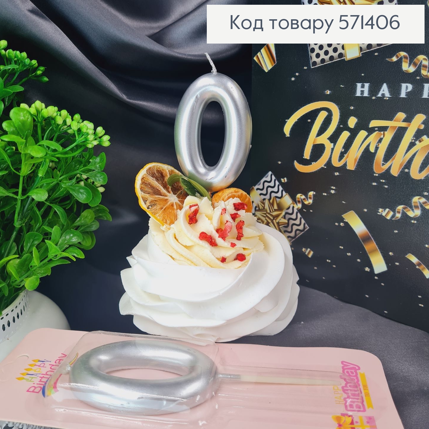 Свечка в торт цифра "0", Серебро, 6,5+4см