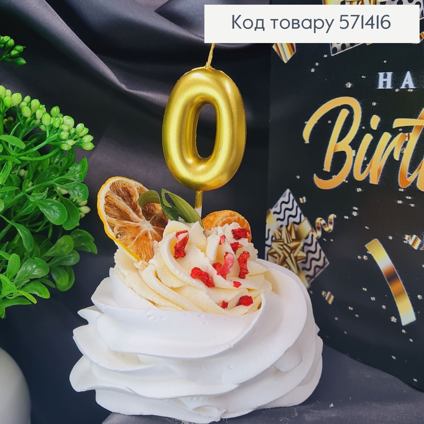 Свечка в торт цифра "0", Хромированая Золото, 5,5+4см, Украина 572610 фото
