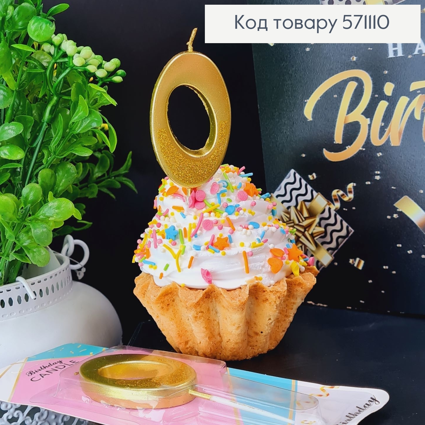 Свечка в торт цифра "0", Хромированая Золото, 5,5+4см, Украина 572610 фото