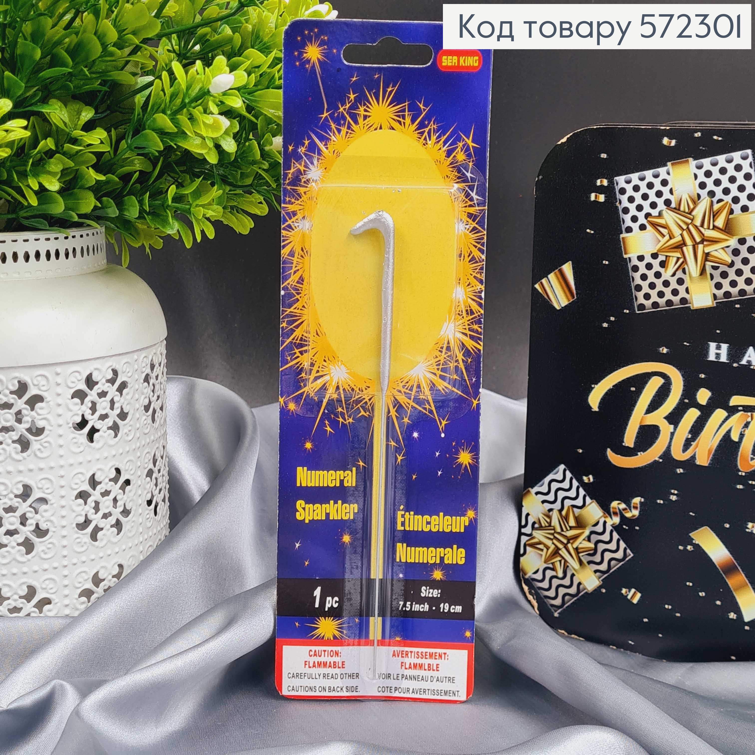 Свечка в торт цифра "1", Серебро Бенгальский огонь, 6,5+10см