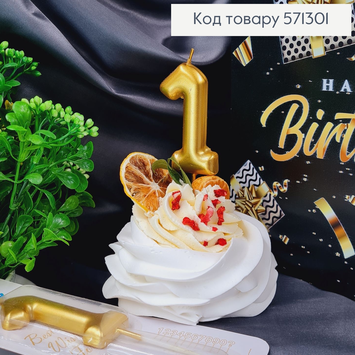 Свечка в торт цифра "1", Золото, 6,5+4см