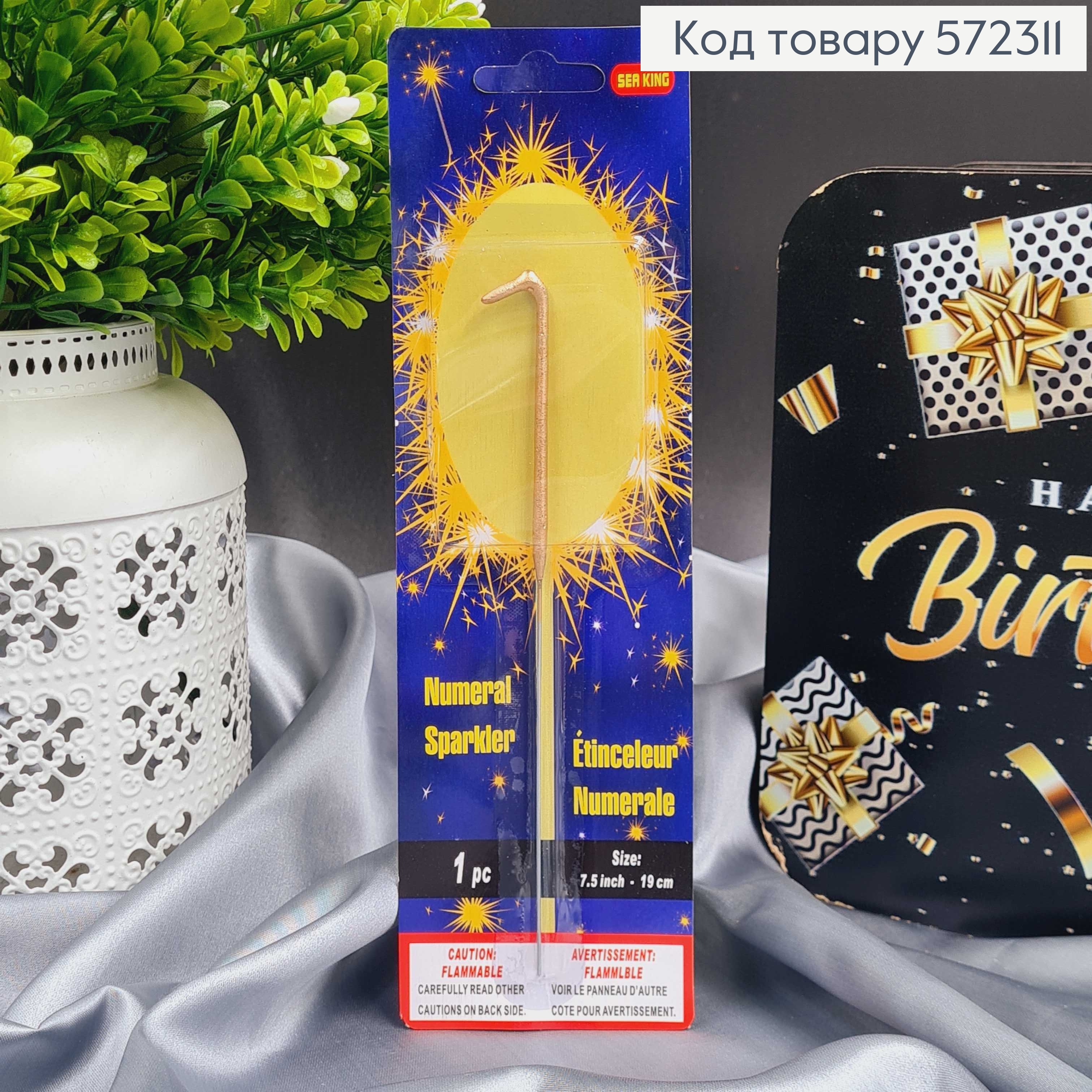 Свечка в торт цифра "1", Золото Бенгальский огонь, 6,5+10см