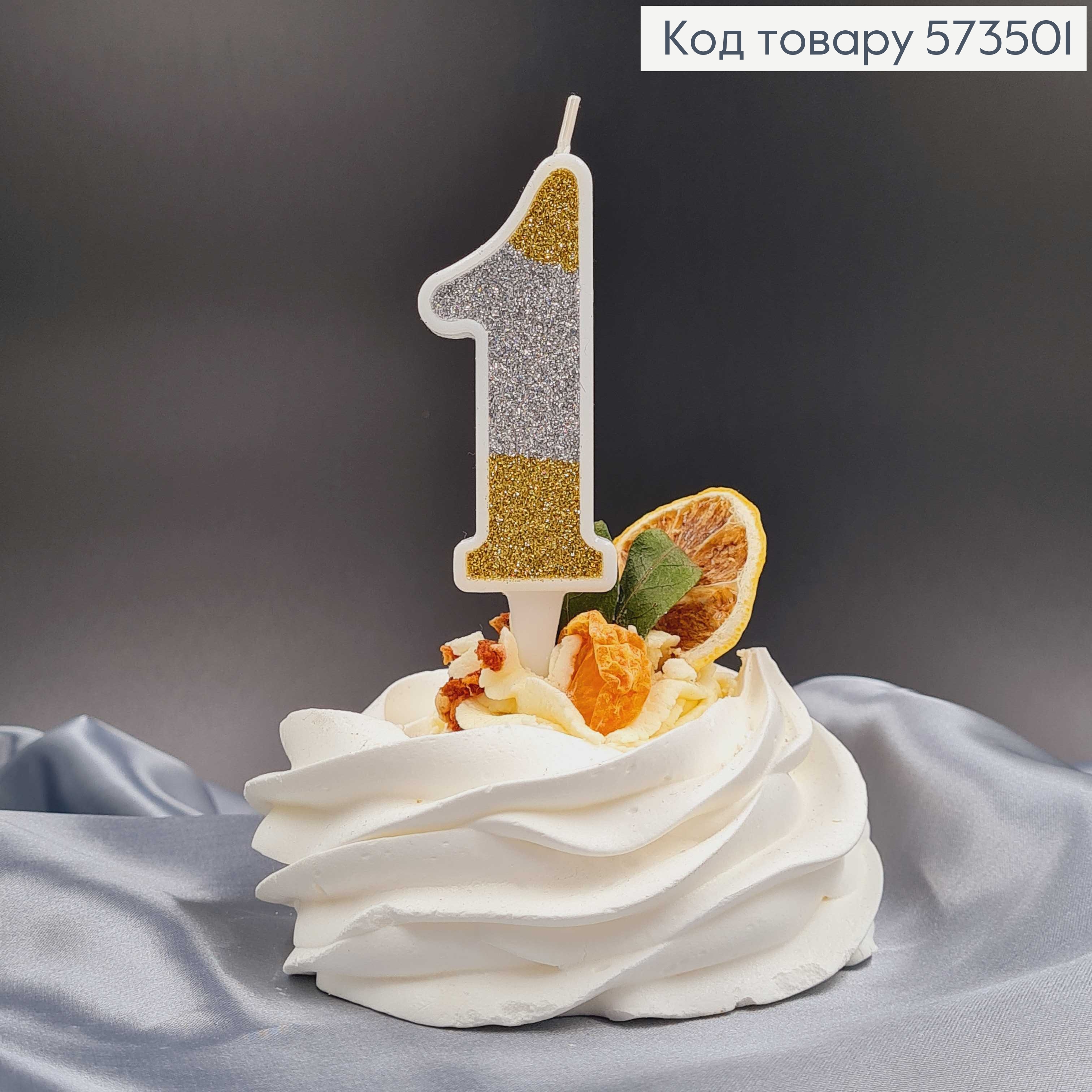 Свечка в торт цифра "1", Золото и Серебро глитер, 7+2см, Украина