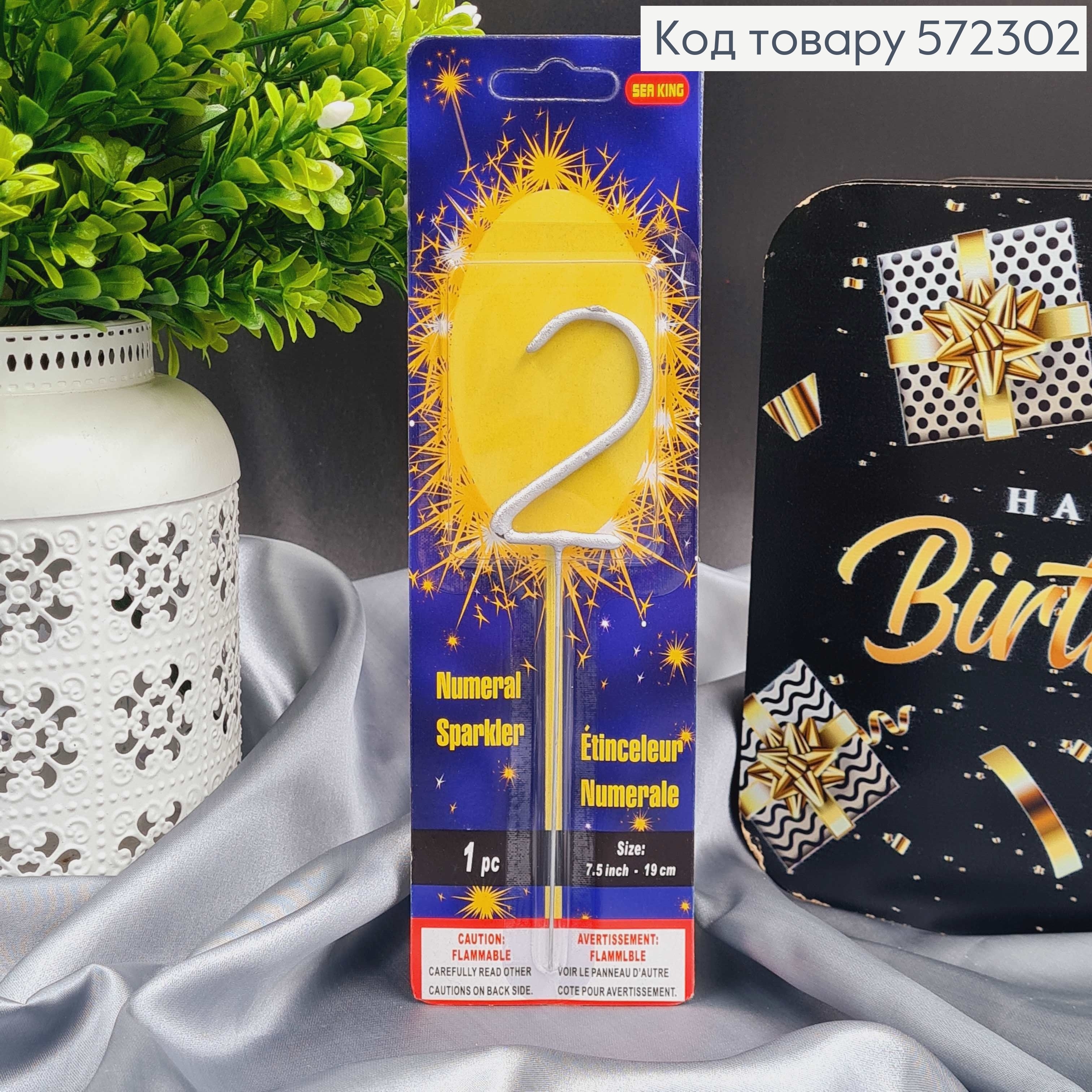 Свечка в торт цифра "2", Серебро Бенгальский огонь, 6,5+10см