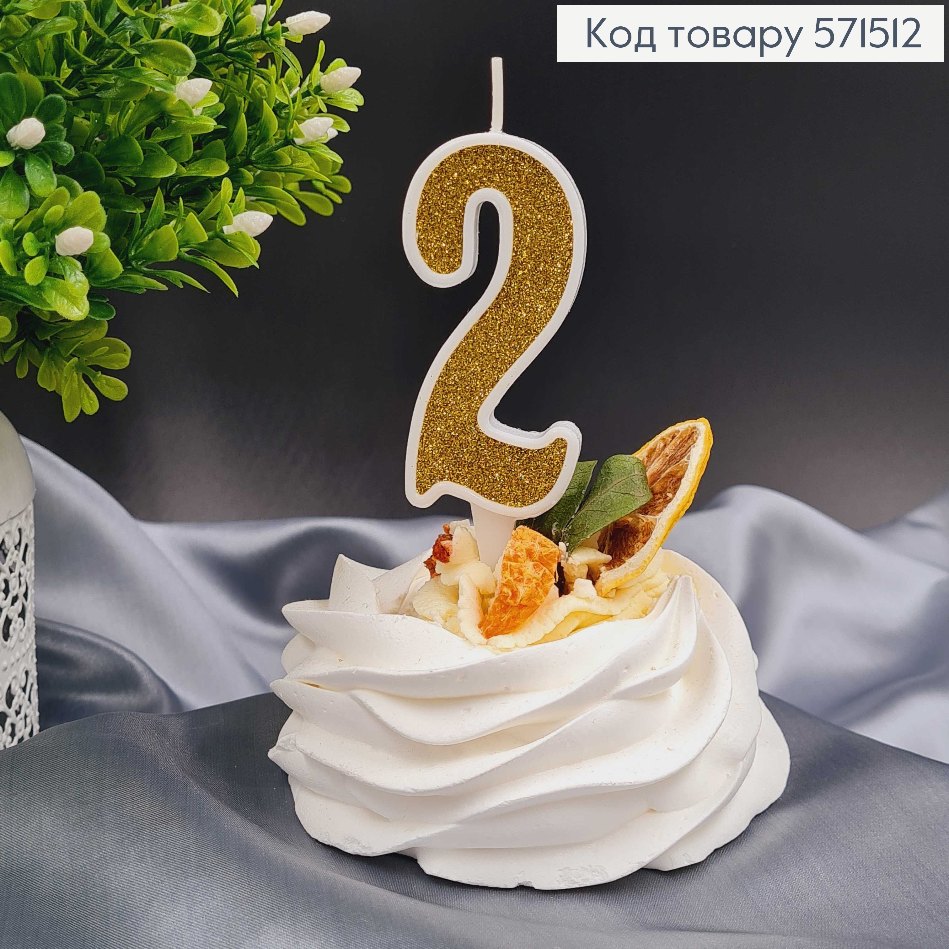 Свечка в торт цифра "2", Золото глитер, 7+2см, Украина
