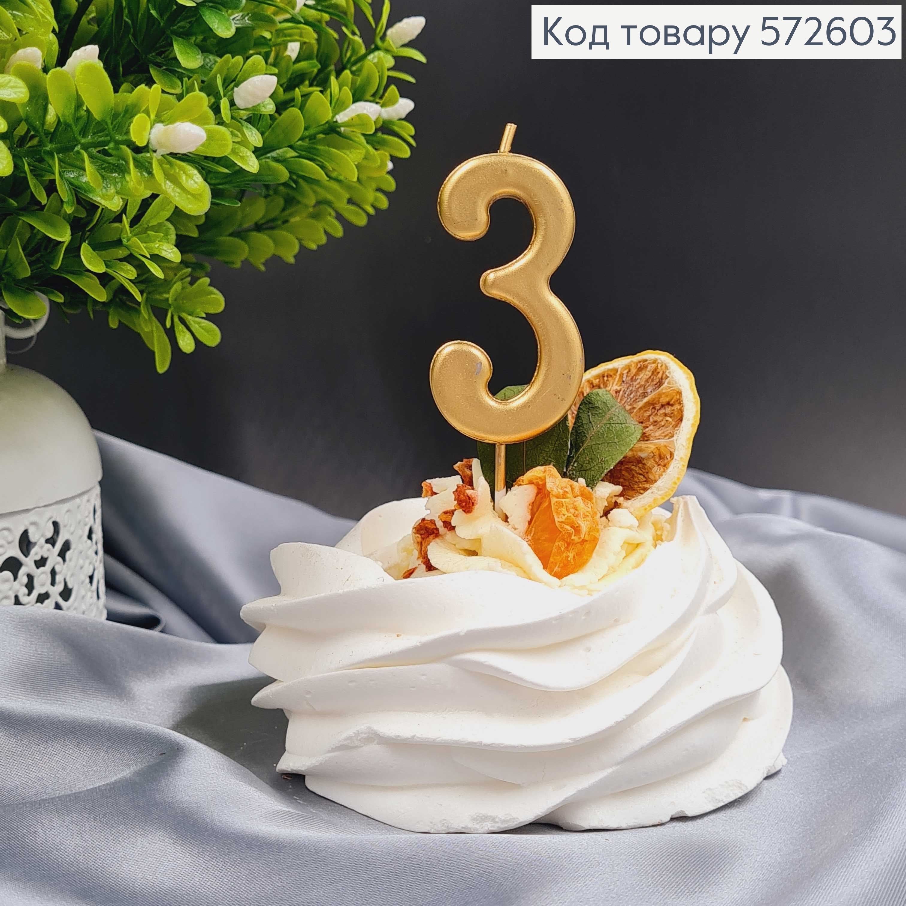 Свечка в торт цифра "3", Хромированая Золото, 5,5+4см, Украина