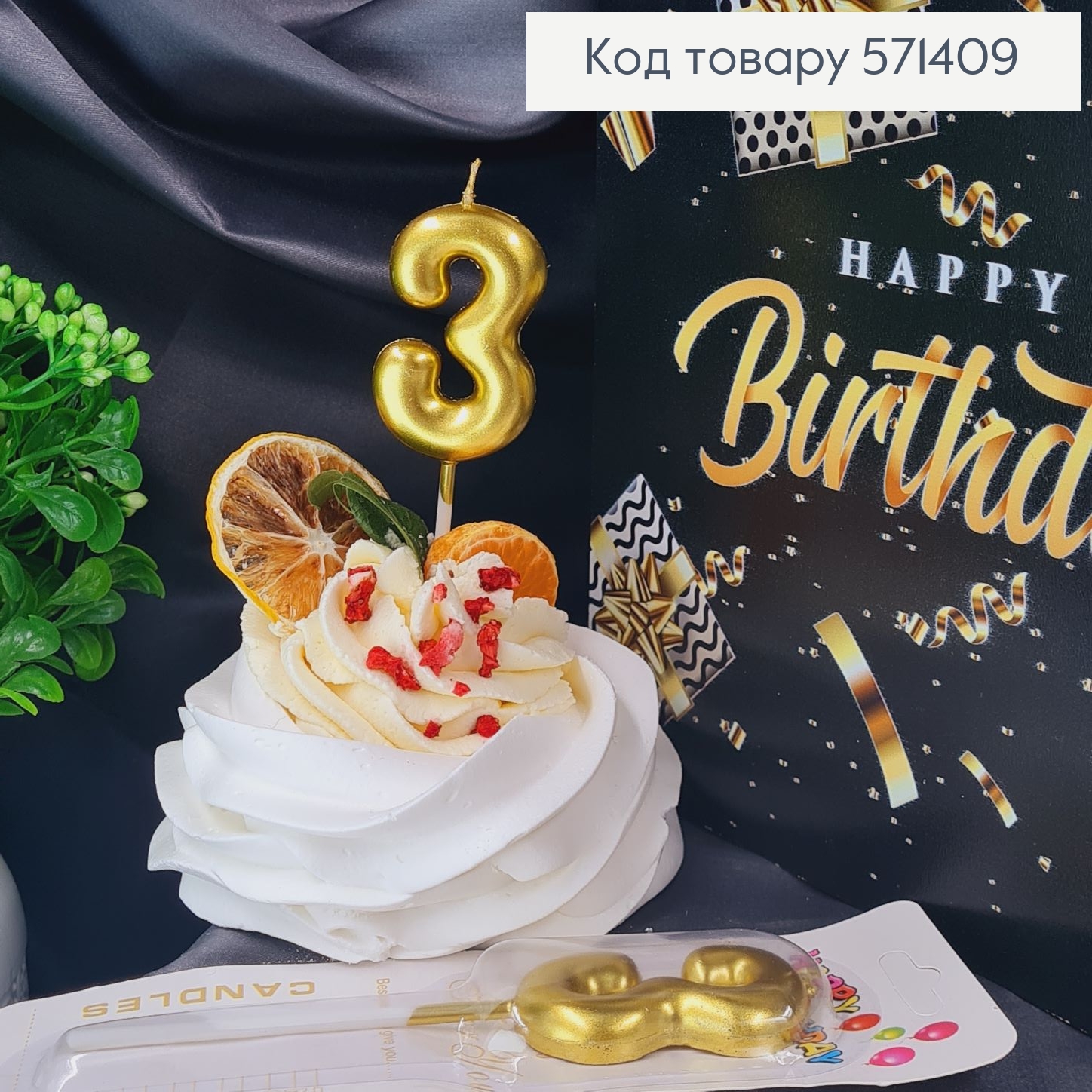 Свечка в торт цифра "4", Хромированая Золото, 5,5+4см, Украина 572604 фото