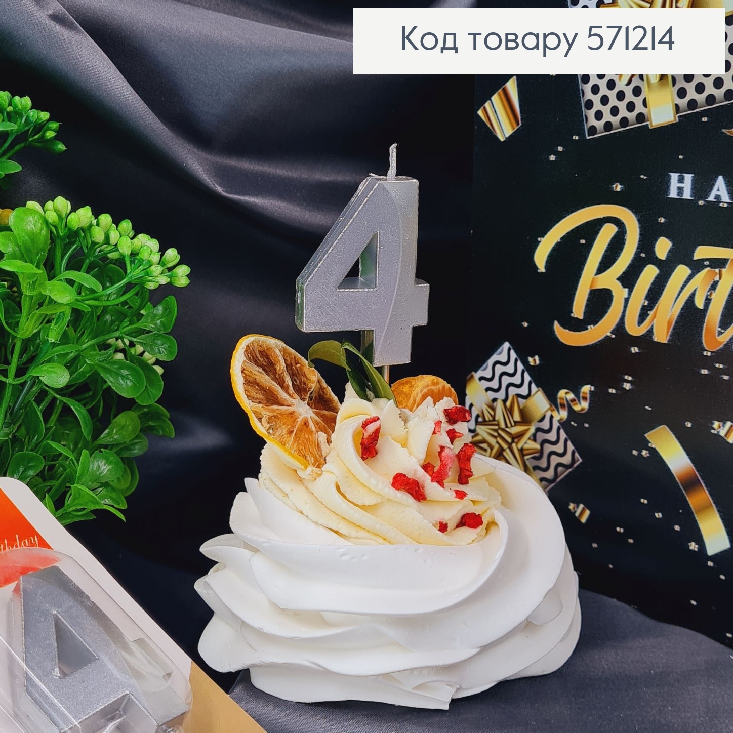 Свечка в торт цифра "4", Серебро 3Д, 4,5+6см