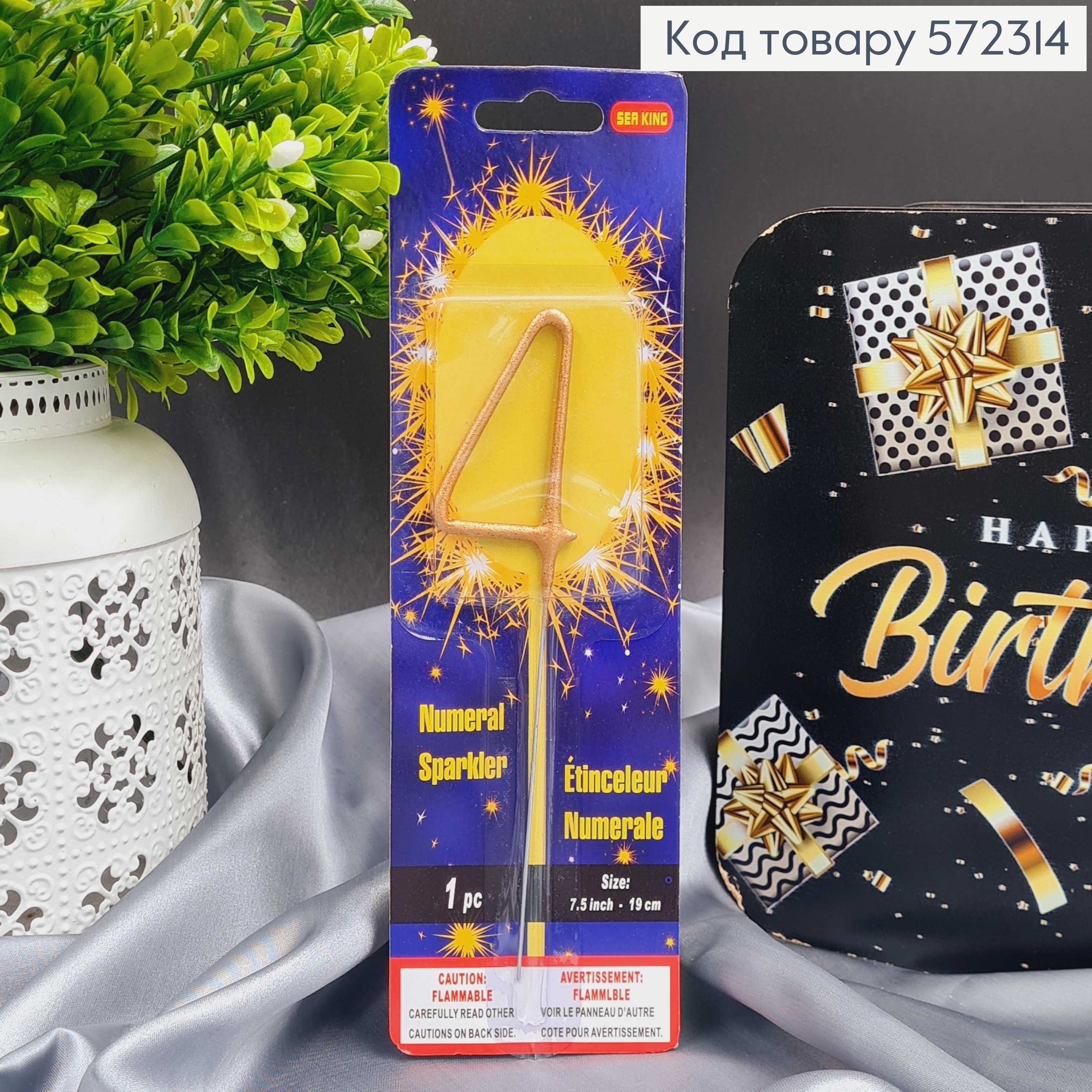 Свечка в торт цифра "4", Хромированая Золото, 5,5+4см, Украина 572604 фото