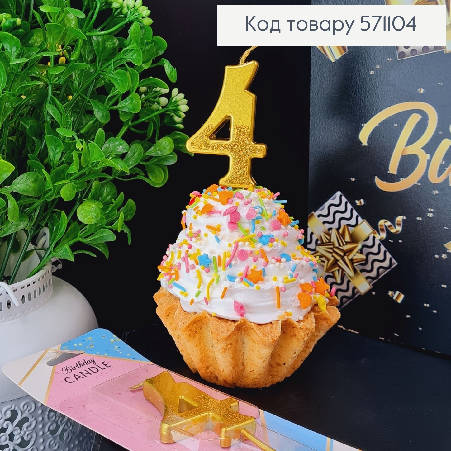 Свечка в торт цифра "4", Хромированая Золото, 5,5+4см, Украина 572604 фото