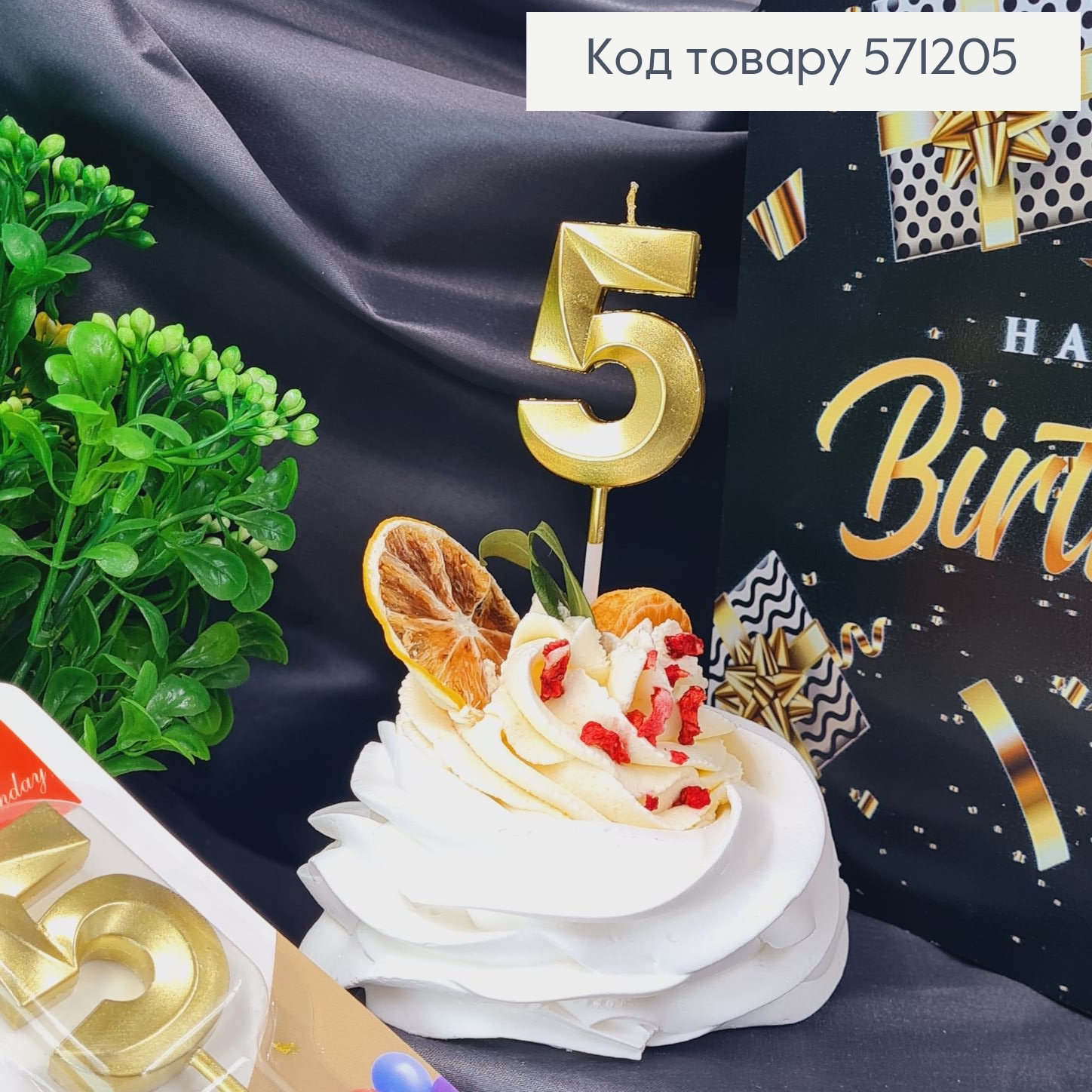 Свечка в торт цифра "5", Золото 3Д, 4,5+6см