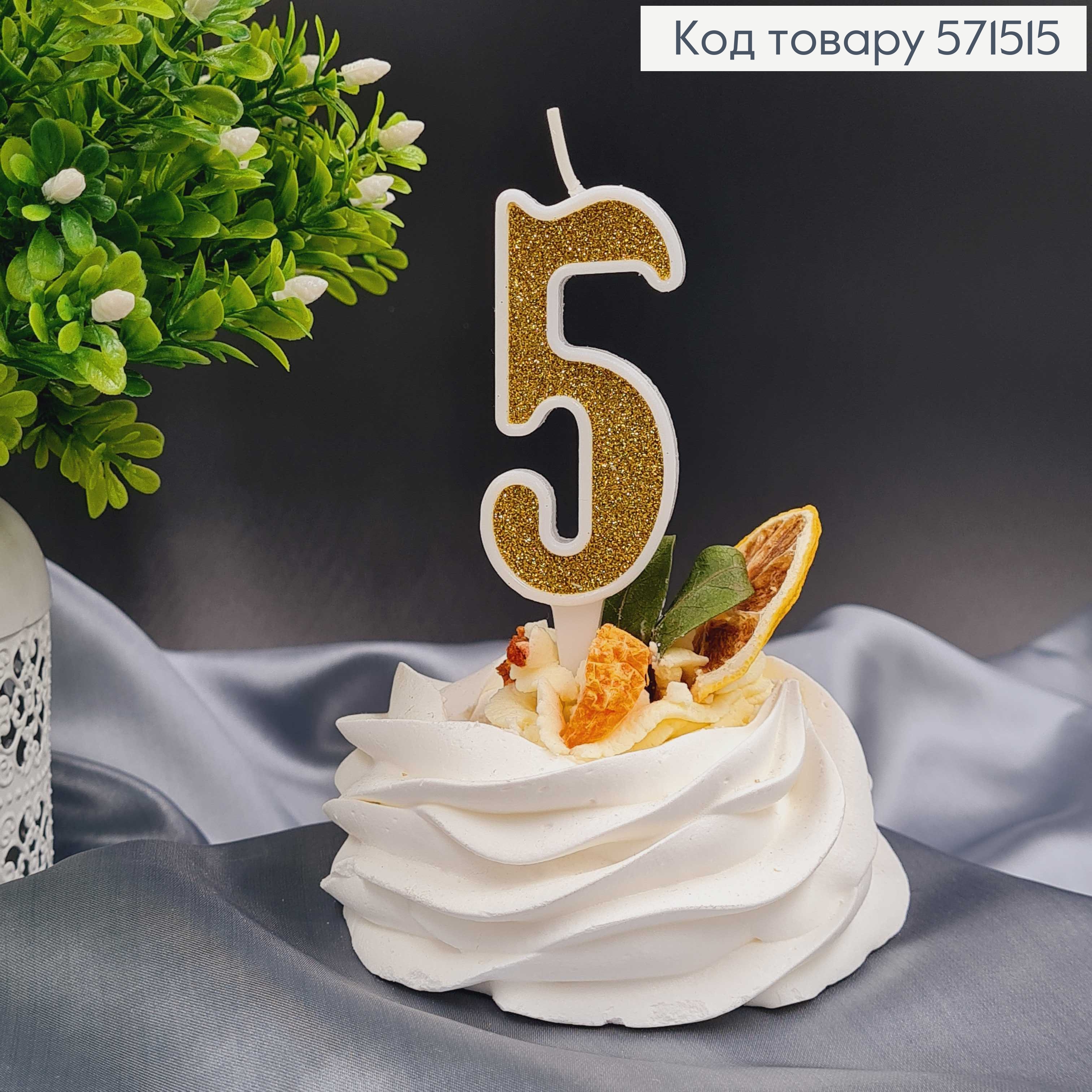Свечка в торт цифра "5", Золото глитер, 7+2см, Украина