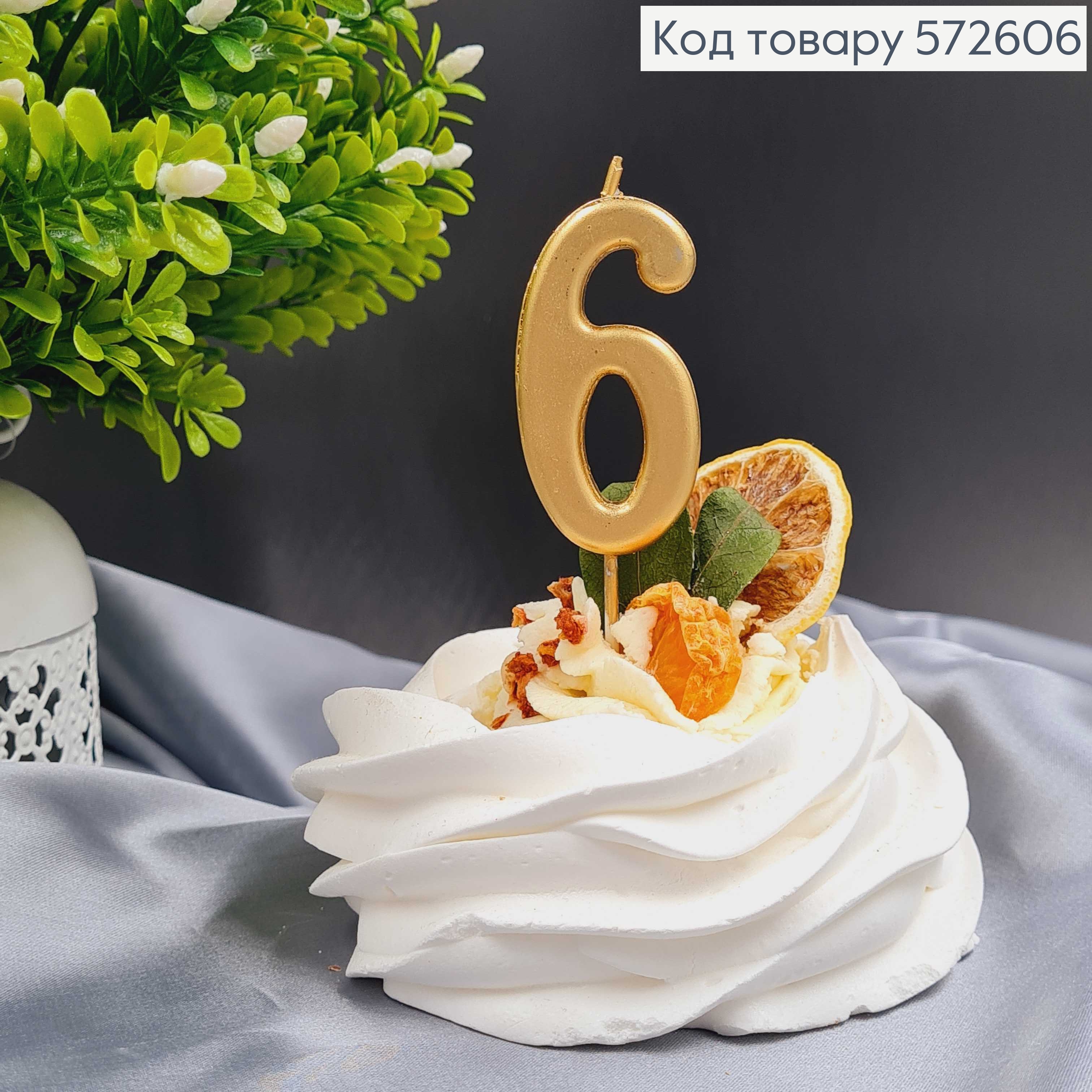 Свечка в торт цифра "6", Хромированая Золото, 5,5+4см, Украина