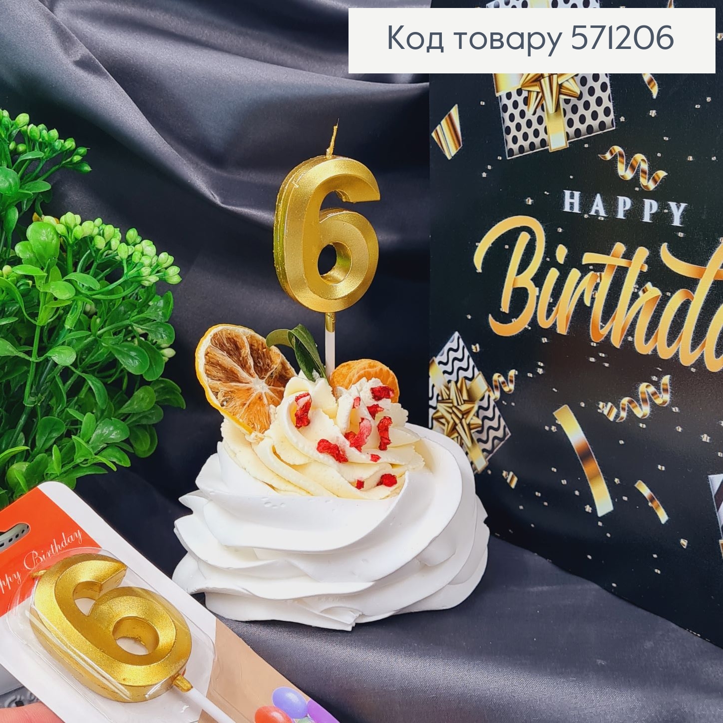 Свечка в торт цифра "6", Золото 3Д, 4,5+6см
