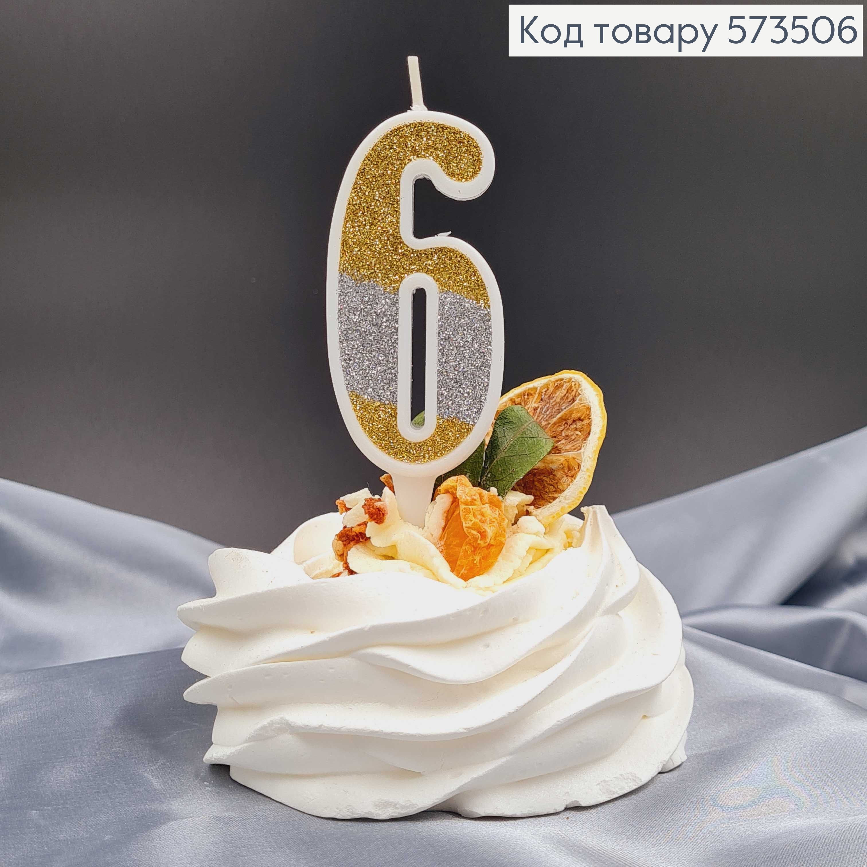 Свечка в торт цифра "6", Золото и Серебро глитер, 7+2см, Украина