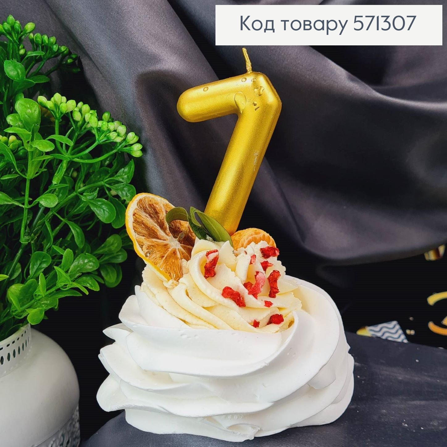Свечка в торт цифра "7", Хромированая Золото, 5,5+4см, Украина 572607 фото