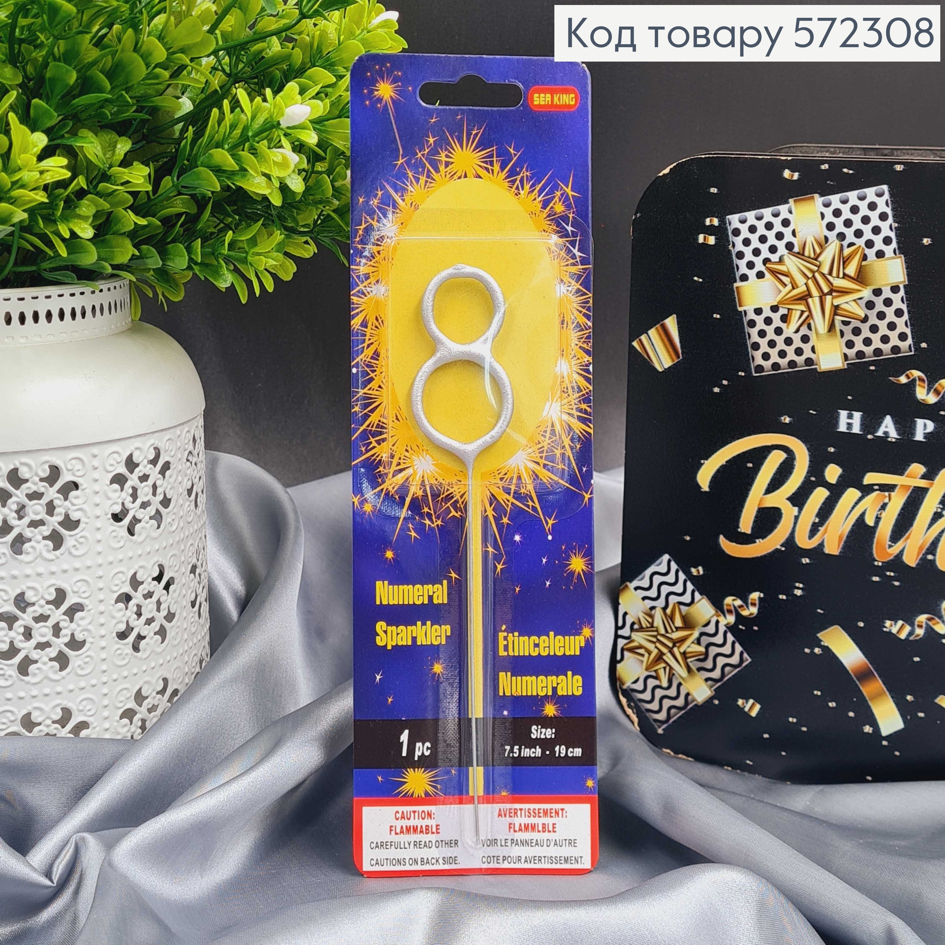 Свечка в торт цифра "8", Серебро Бенгальский огонь, 6,5+10см