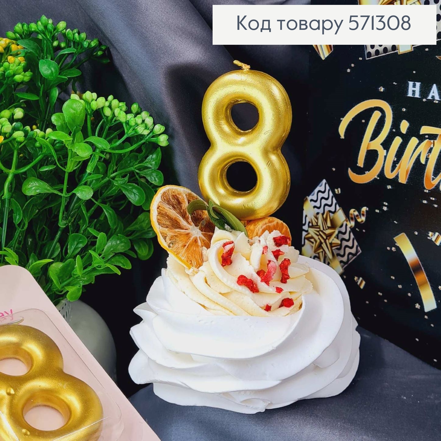 Свечка в торт цифра "8", Золото,6,5+4см