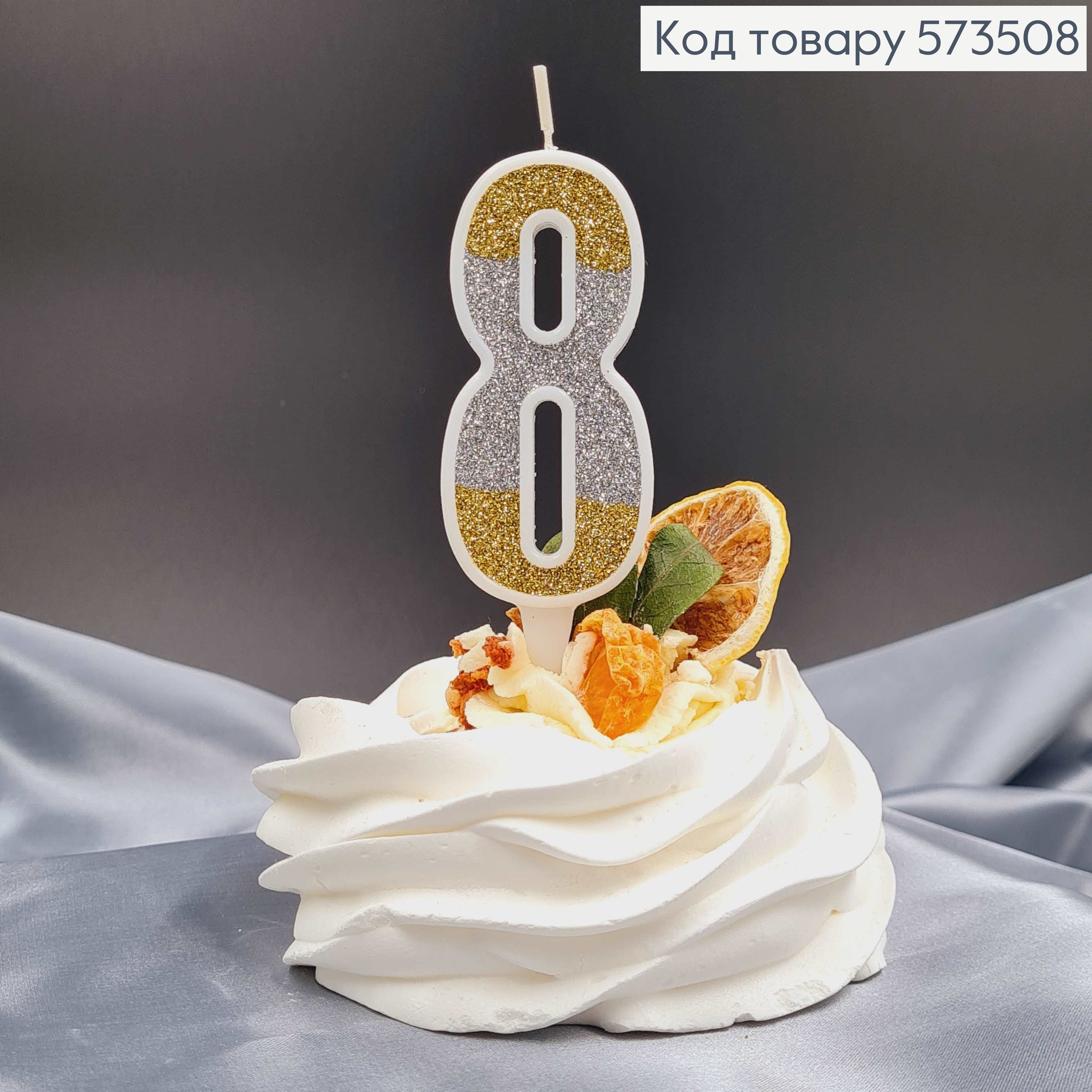 Свечка в торт цифра "8", Золото и Серебро глитер, 7+2см, Украина