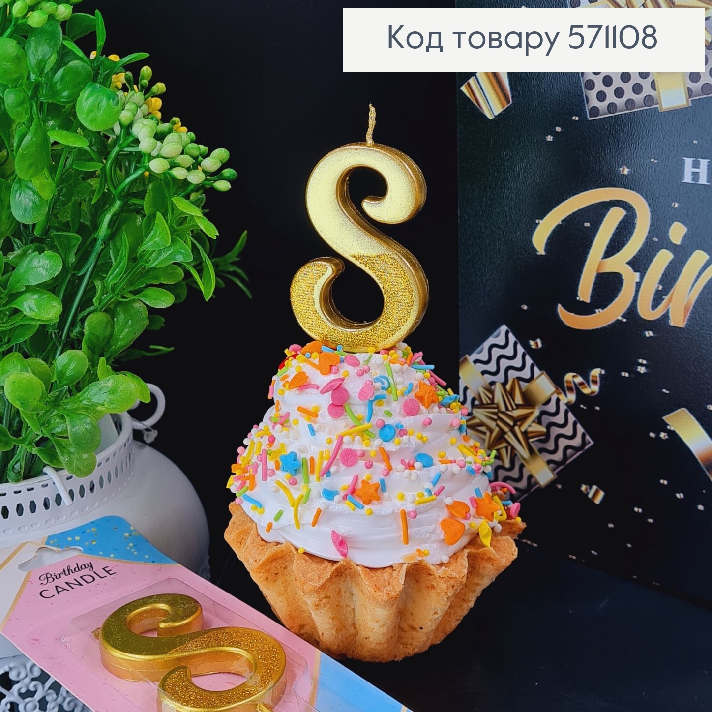 Свечка в торт цифра "8", Золото с блеском, 5+4см