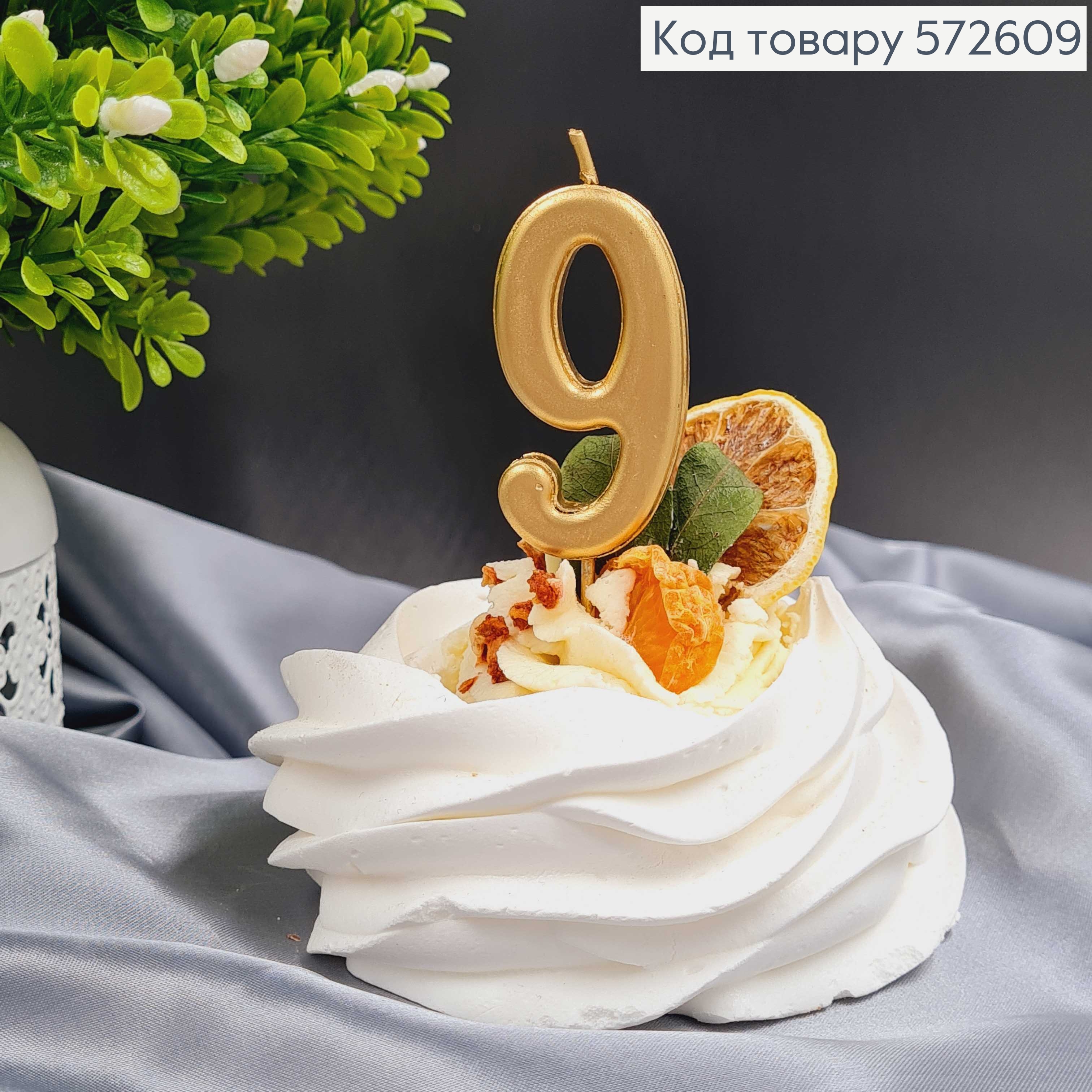 Свечка в торт цифра "9", Хромированая Золото, 5,5+4см, Украина