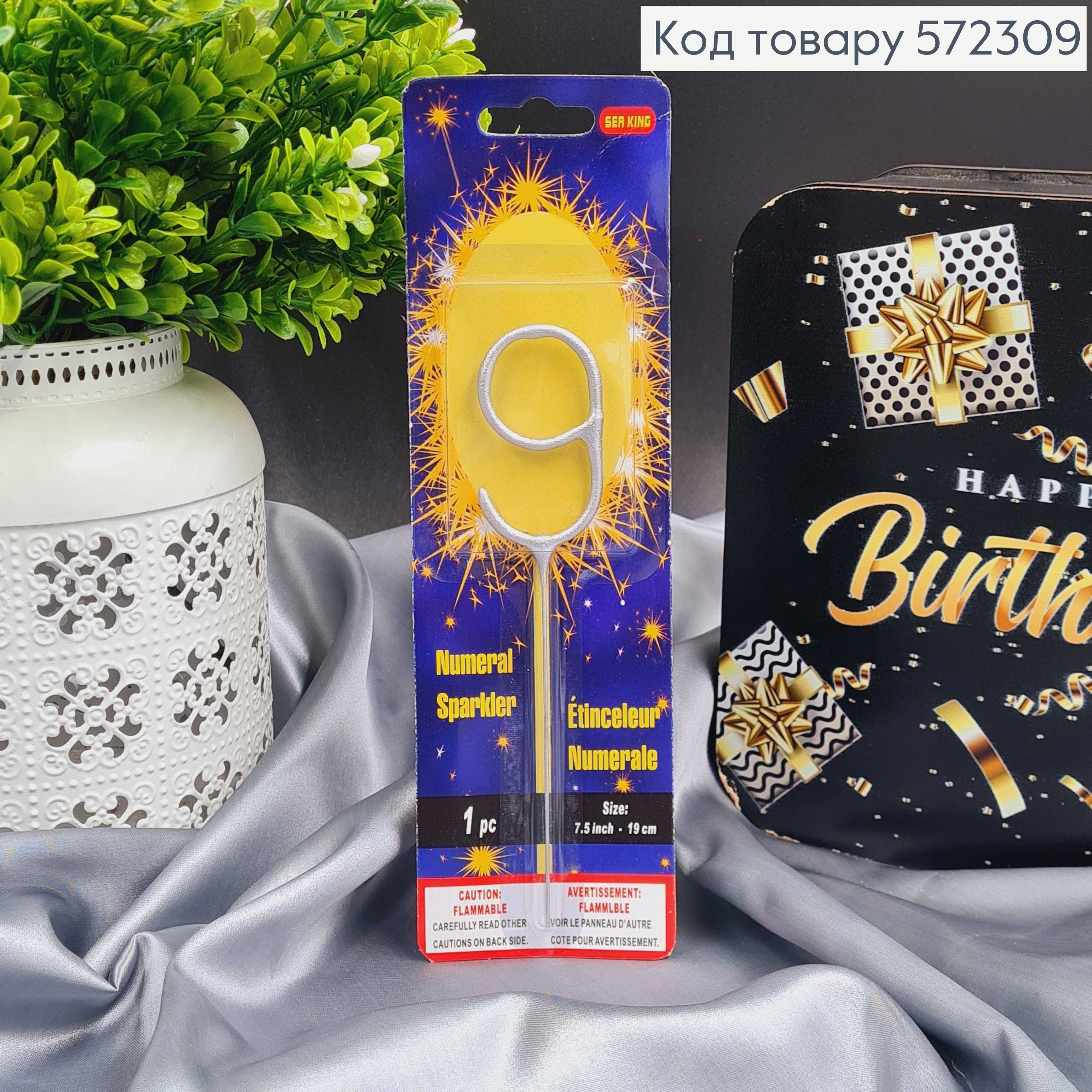 Свечка в торт  цифра "9", Золото Бенгальский огонь, 6,5+10см 572319 фото