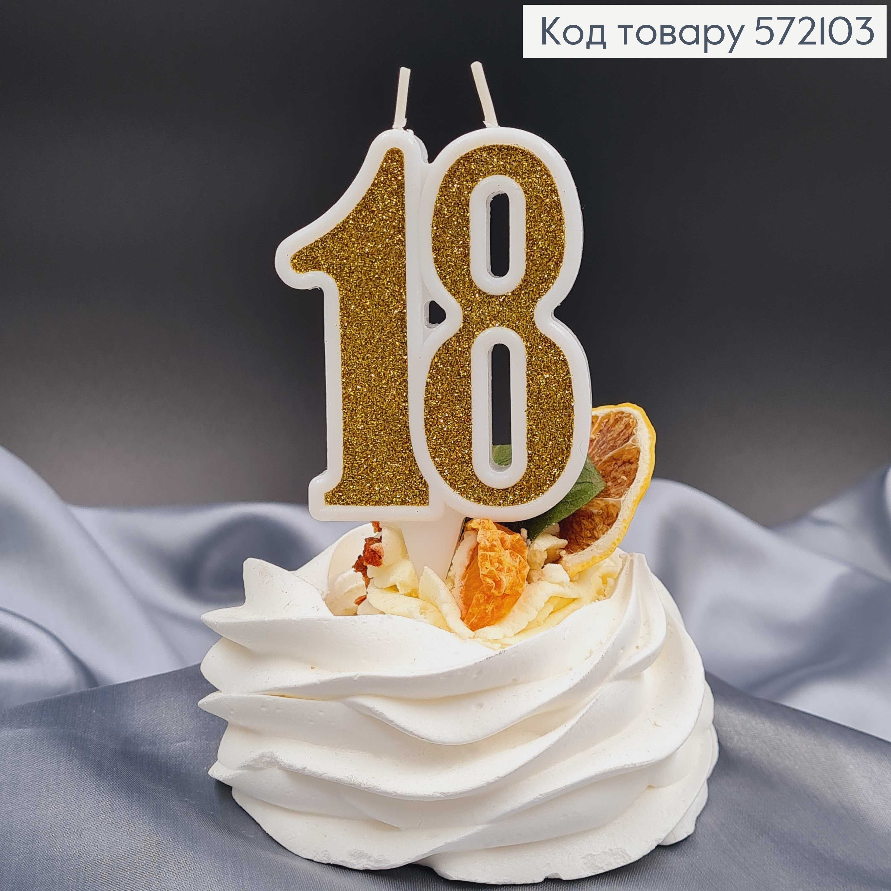 Свечка в торт юбилейная "18", Золото глитер, 7,5+1,5см