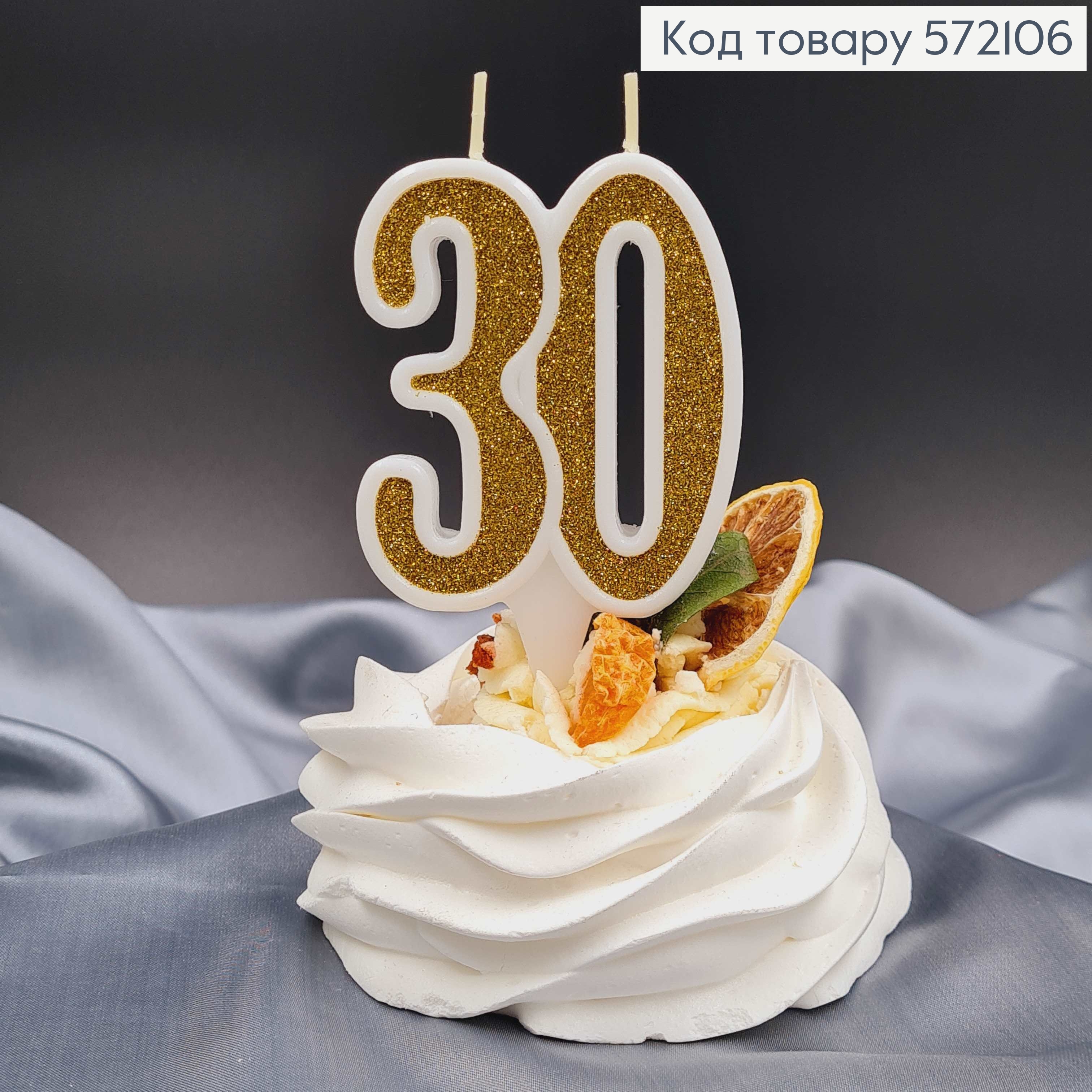 Свечка в торт юбилейная "30", Золото глитер, 7,5+1,5см