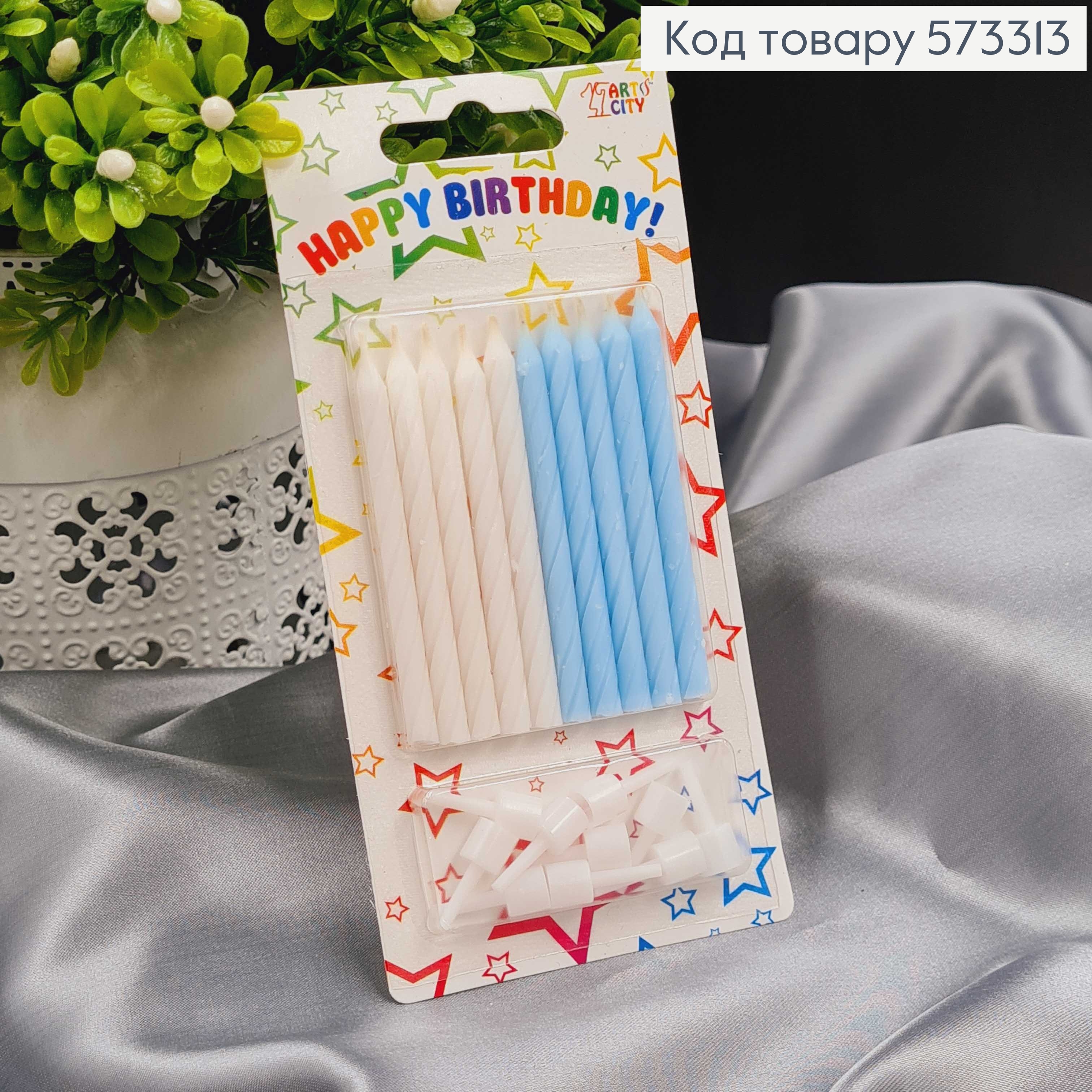 Свечки для торта Белые и Голубые с подставками, 10шт/уп, 7+2см, Украина