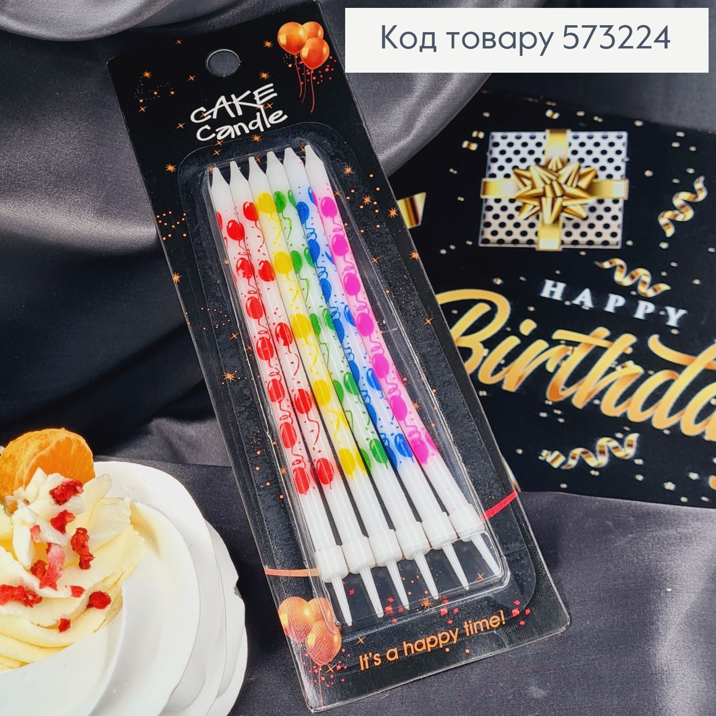 Свечки в торт Белые с цветными шариками и подставками 6шт/уп, 13+1см