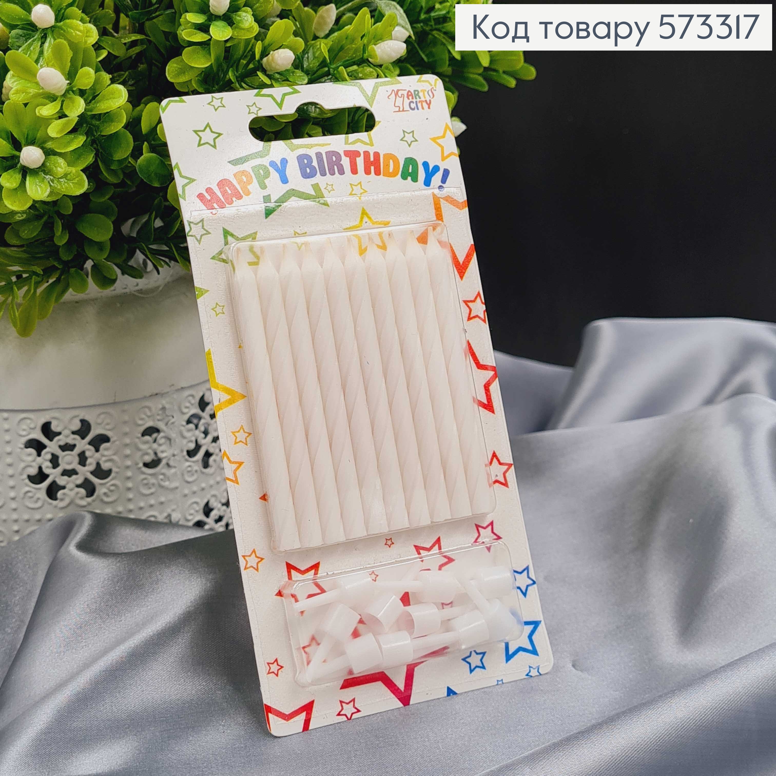 Свечи для торта Винтовые, БЕЛОГО цвета, 12шт/уп, 11+4см 573648 фото