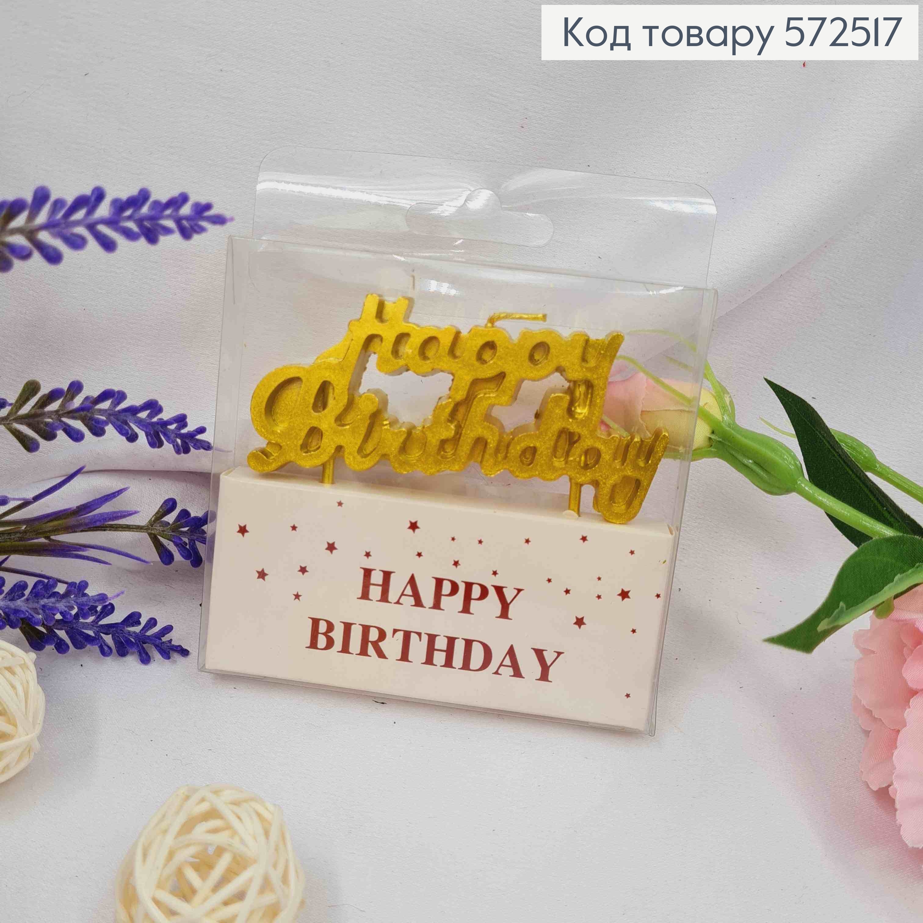 Свечи для торта, цельная, "Happy Birthday", ЗОЛОТОГО цвета, 8,5*3+3см