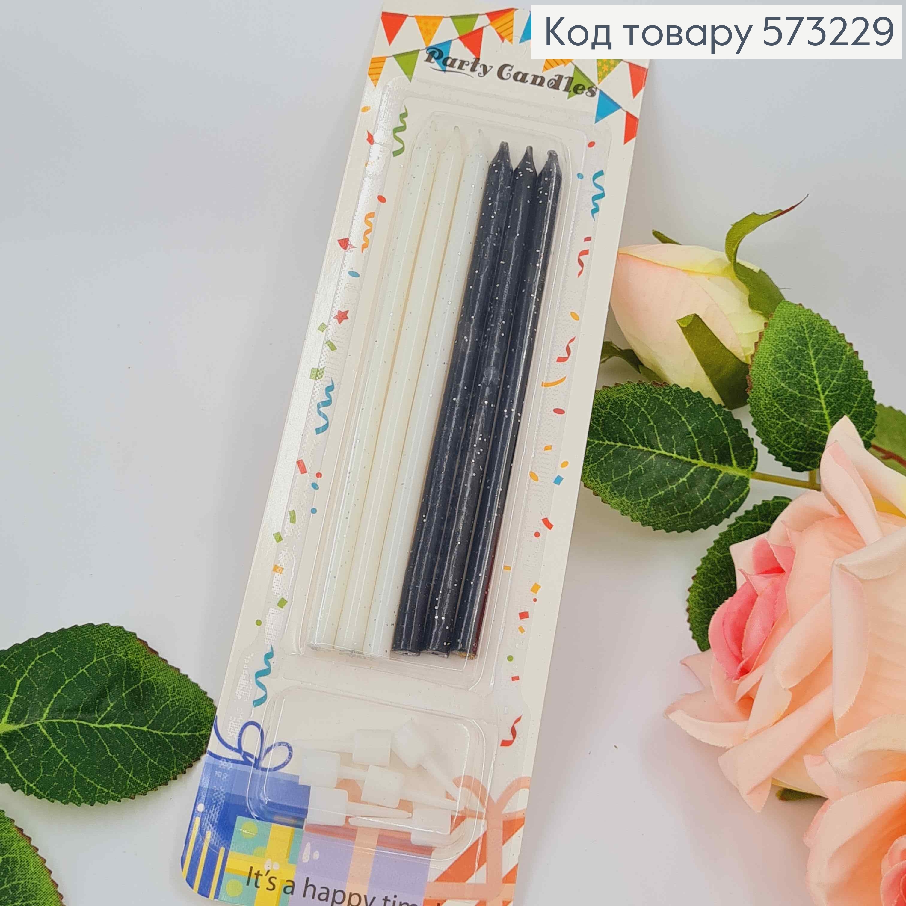 Свечи для торта, Черные и Белые с блестками, 12,5+2см