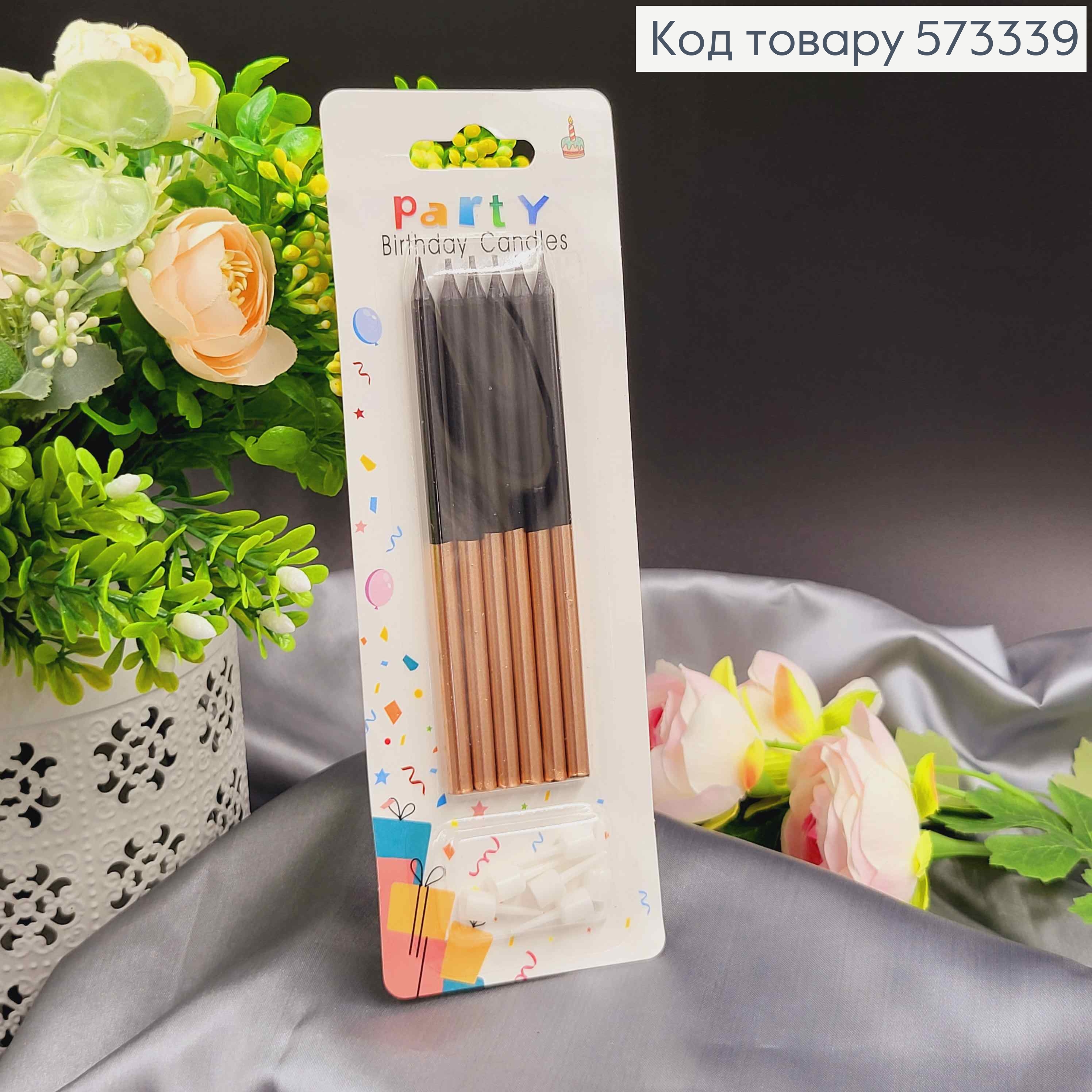 Свечи для торта, Черные+Золото, 12,5+2см, 6шт./уп