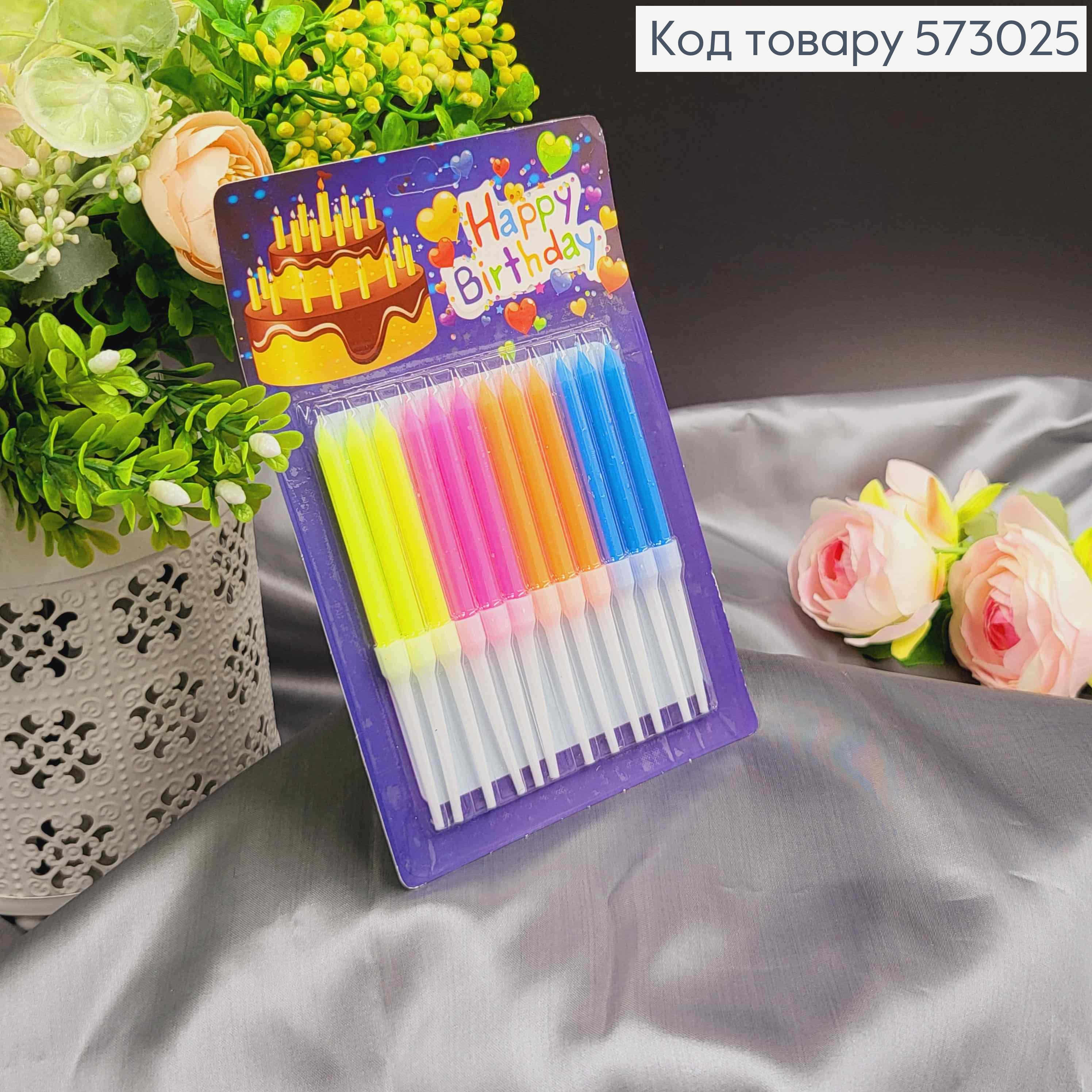 Свечи для торта Четыре цвета (Неоновые), с подставками 12шт/уп, 6+4,5см