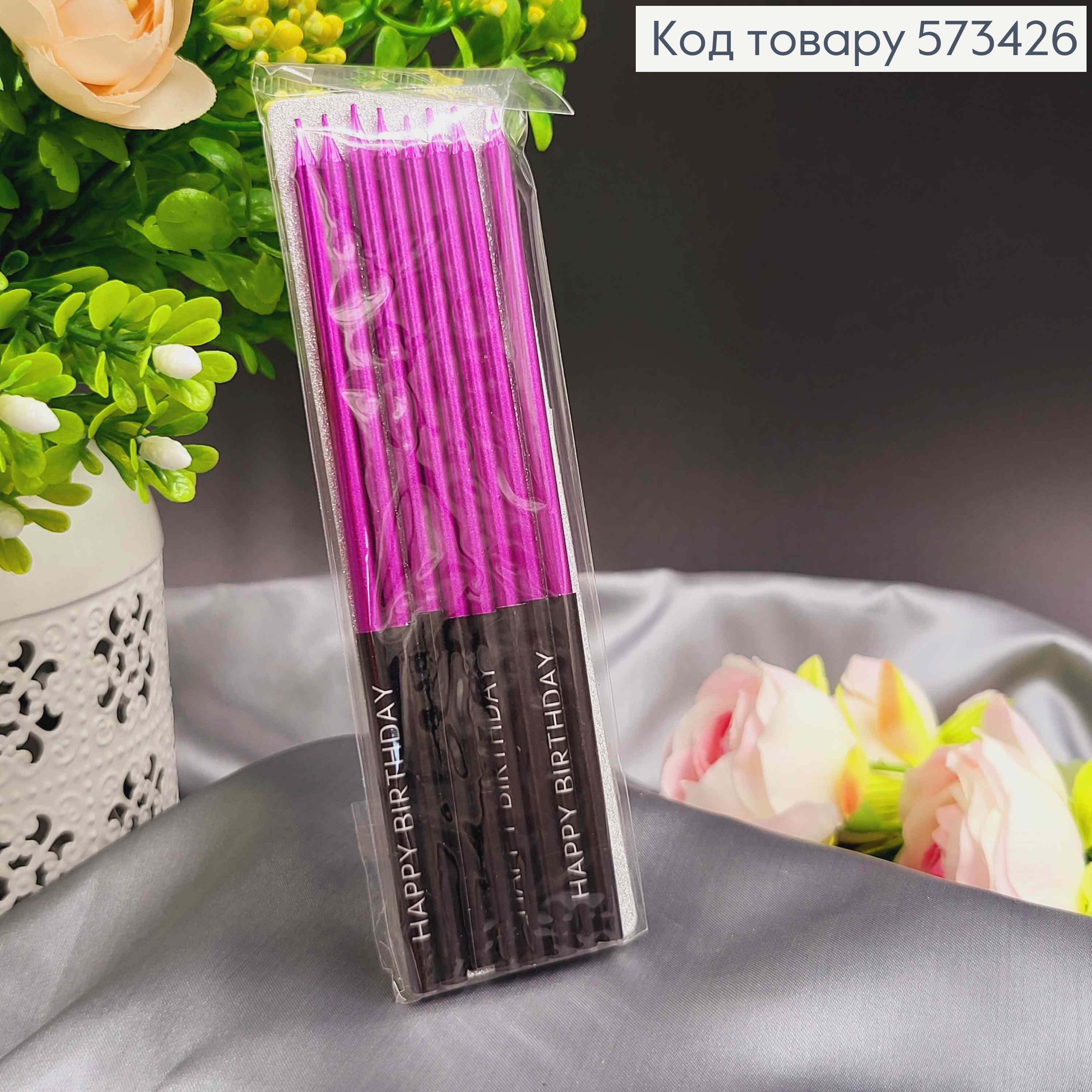 Свечи для торта, Фиолетовый металлик+Черное с надписью, 14,5см, 8шт./уп