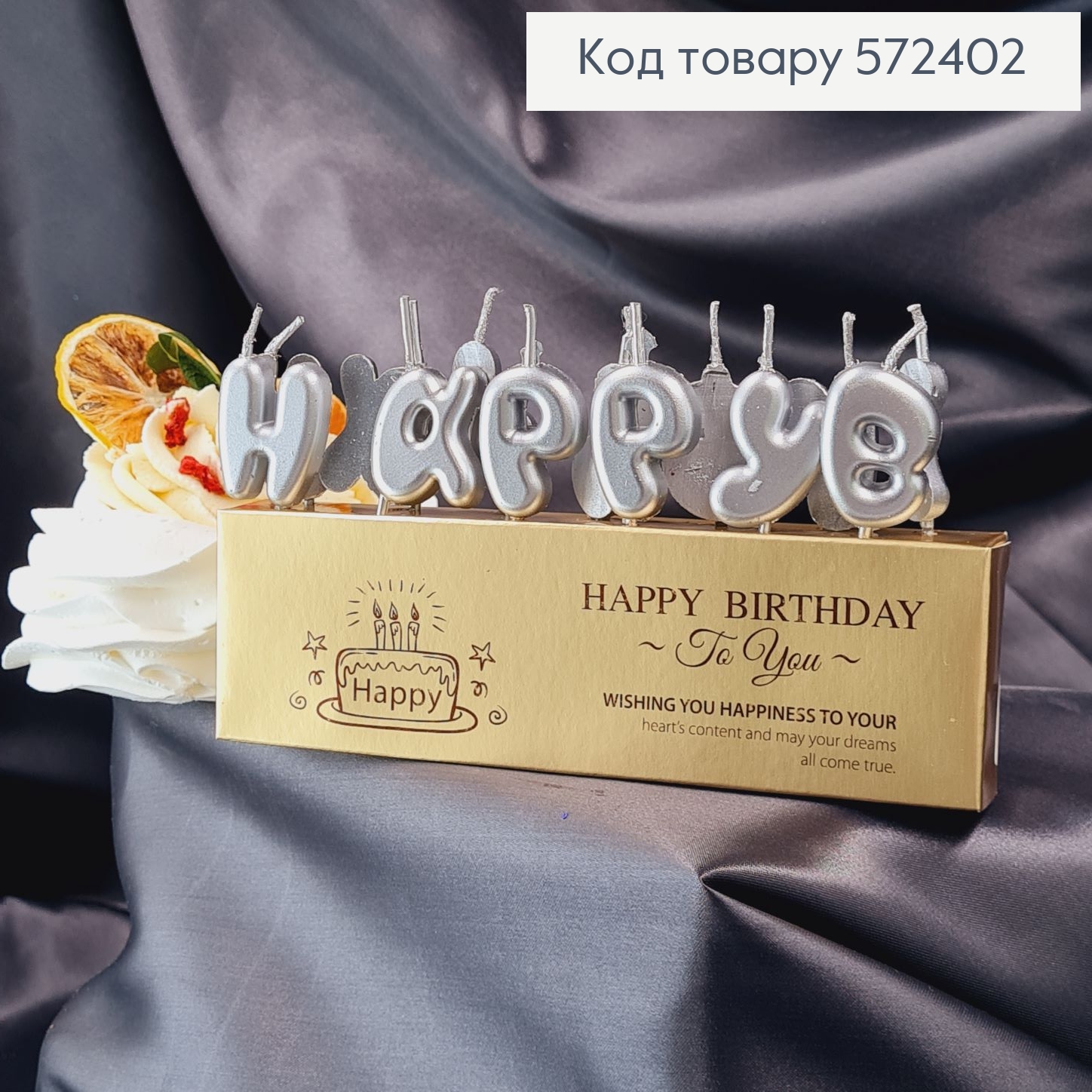 Свечки для торта "Happy Birthday" Серебро, 13шт/уп., 3+4,5см