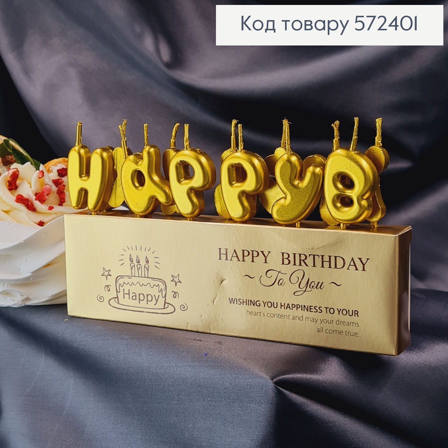 Свечки для торта "Happy Birthday" Золото, 13шт/уп., 3+4,5см