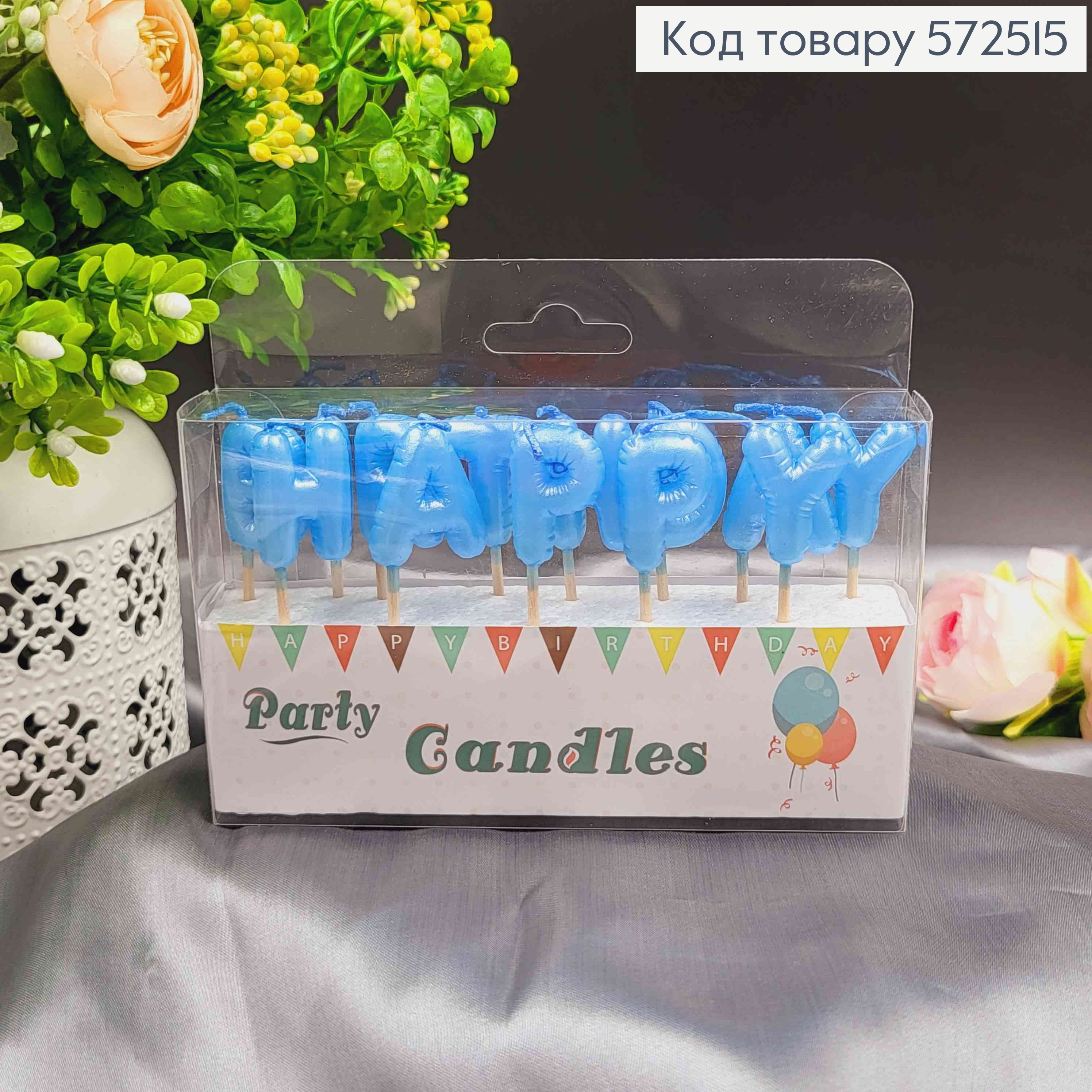 Свечи для торта, имитация шариков, "Happy Birthday" Голубые, 13шт/уп., 3+4,5см