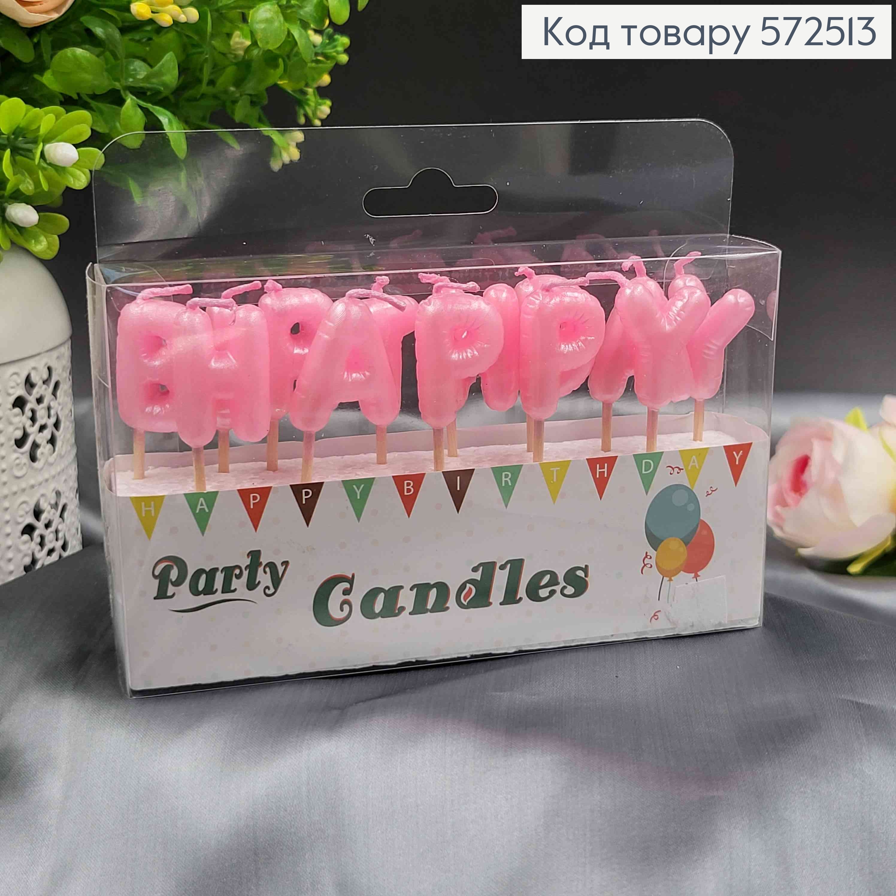 Свечи для торта, имитация шариков, "Happy Birthday" Розовые, 13шт/уп., 3+4,5см