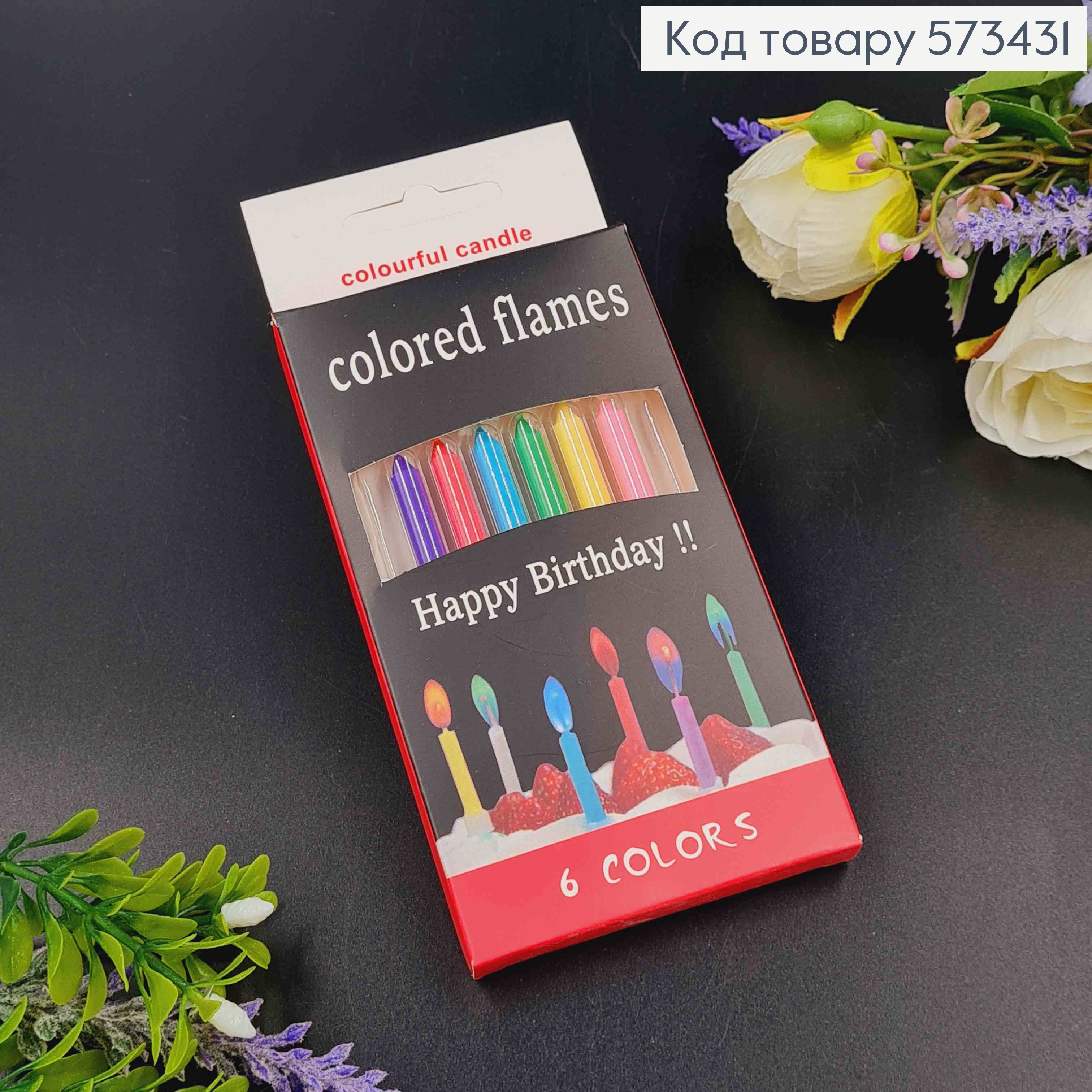 Свечи для торта, цветные, с цветным огнем, 5+4см, 6шт./уп